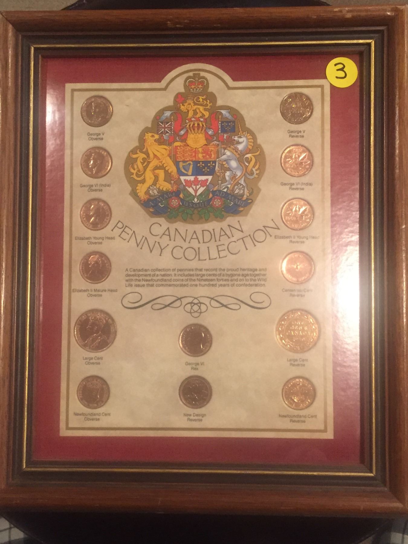 Canadian Penny Collection, framed, large & small cents