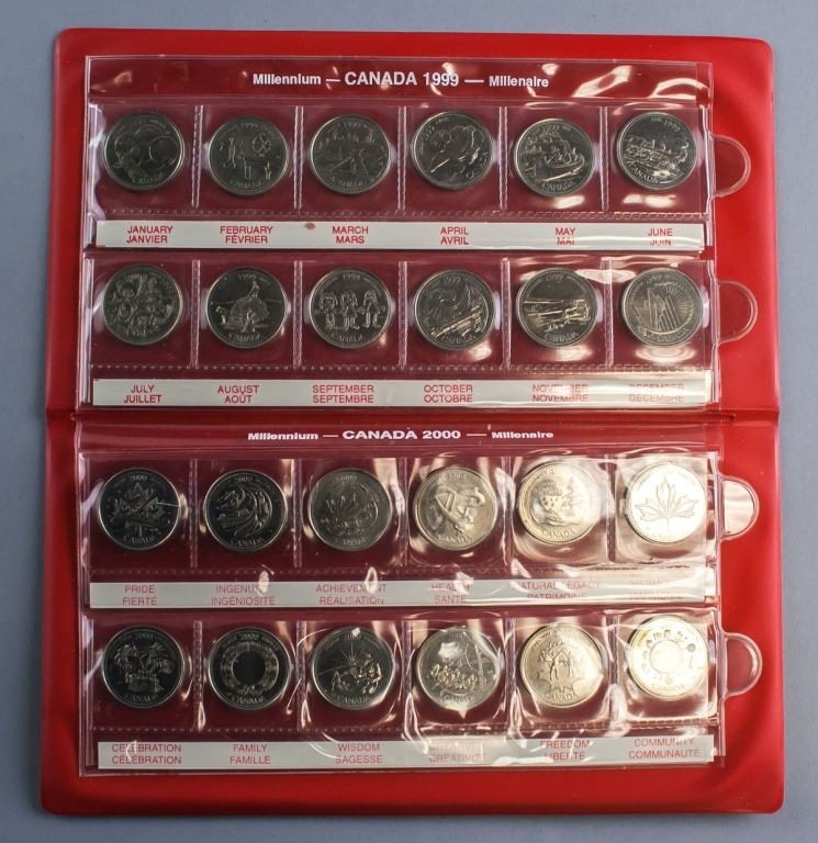 Canadian coin set. Millennium quarters. 1999-2000. 11 x 21 cm. 217 grams (including case).