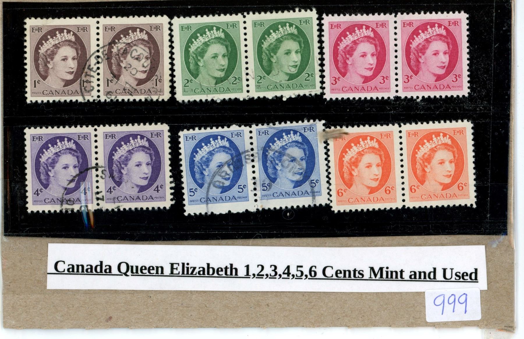 Canadian, Queen Elizabeth 1, 2, 3, 4, 5, 6 cents - Mint and Used