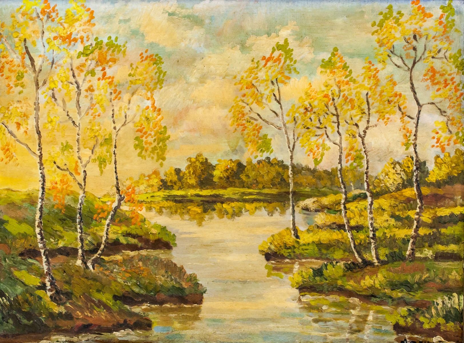 Oil on canvas, framed. Featuring a summer landscape scene. Signed "B. Marijosius" on the lower right corner. Canadian, 20th century. 49 x 74 cm (19.25 x 29.25 in) Frame: 62 x 87 cm (24.5 x 34.25 in). PROVENANCE: Hamilton estate