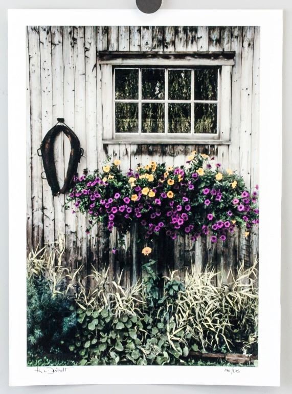 Photograph of the side of a barn with window and saddle hanging on the wall. Signed by H. C. Dermott (Canadian) and numbered 176/275 on the lower left and lower right corner, respectively. 26 x 36 cm (10.25 x 14 inches). Provenance: Toronto estate