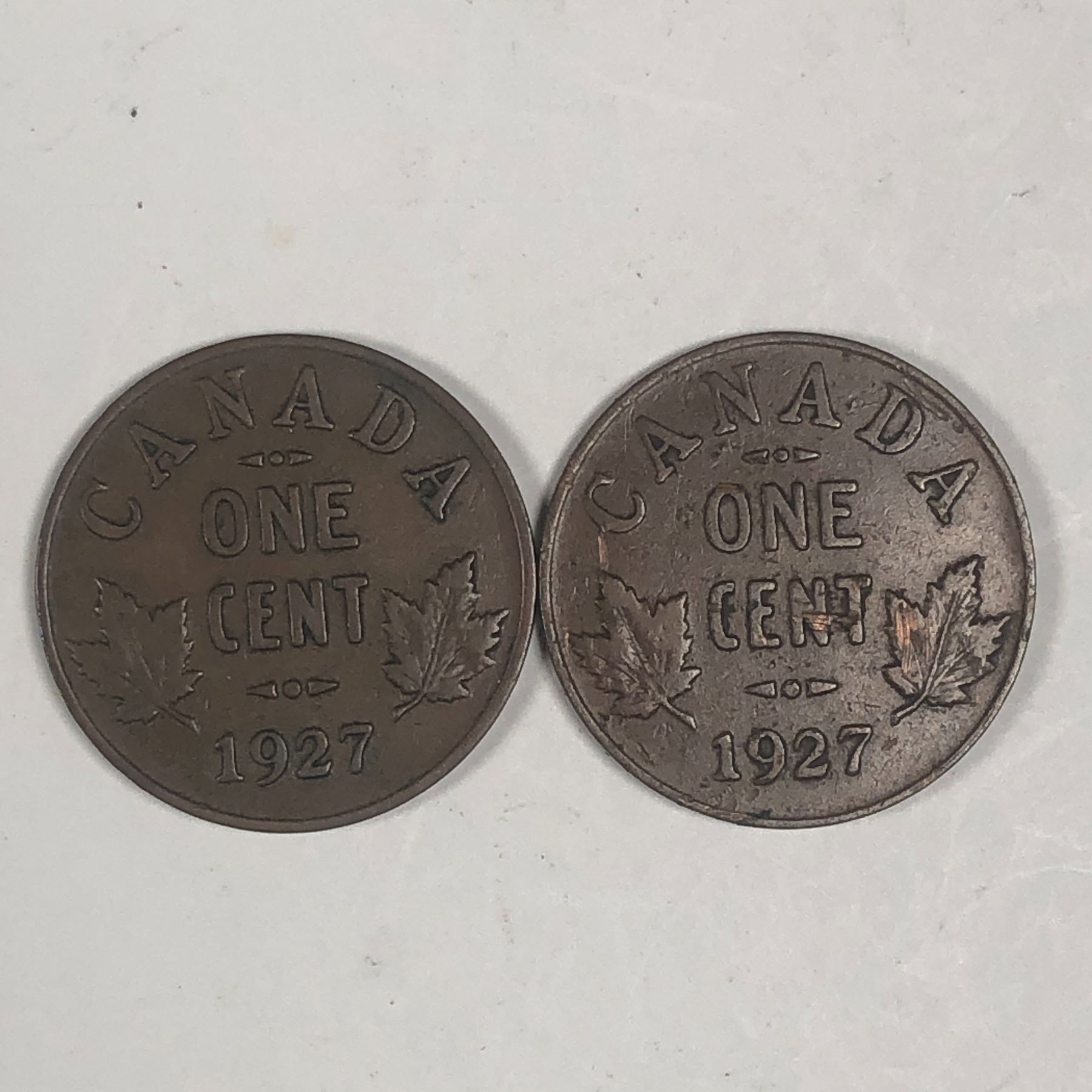 Canadian Small Cent 1927 X 2