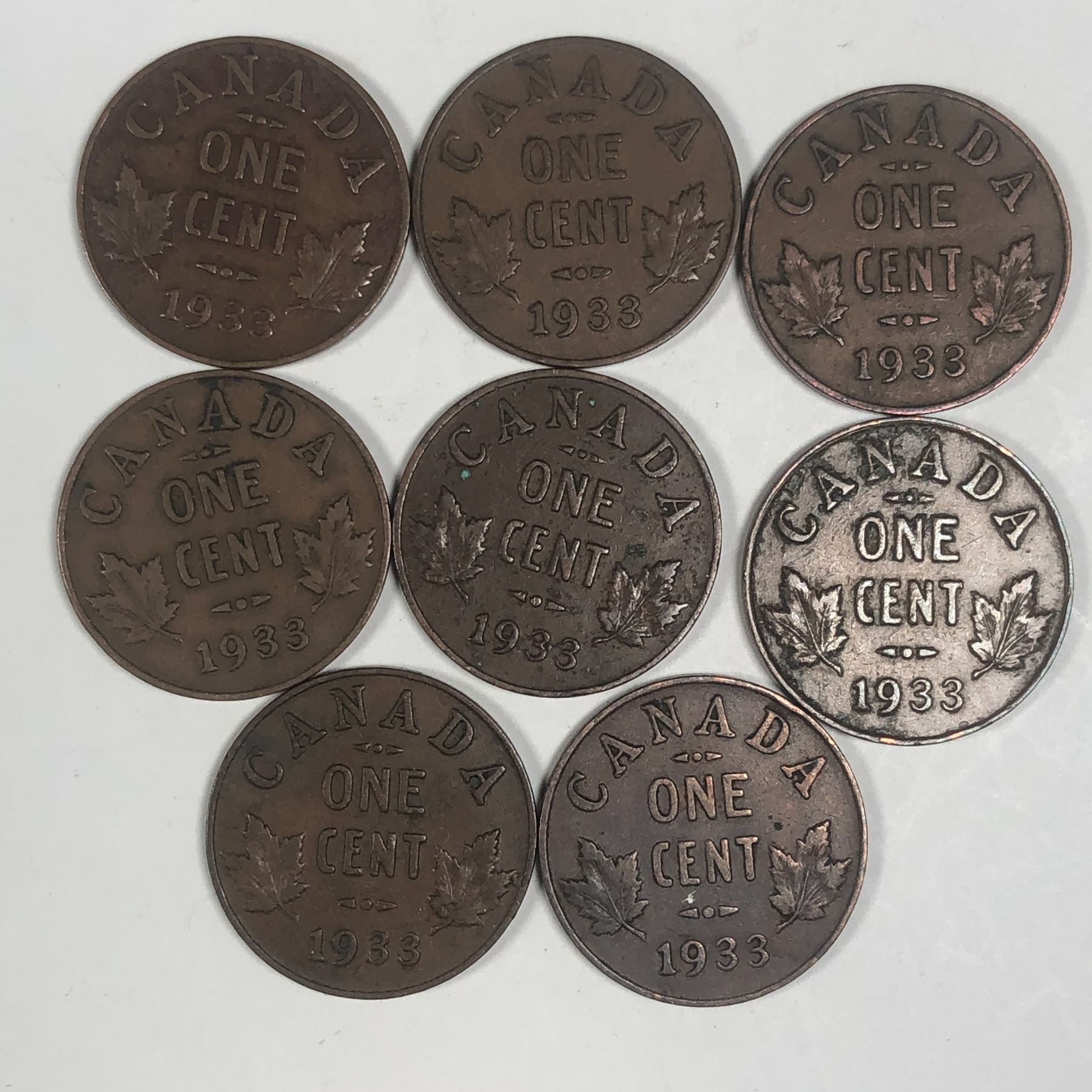 Canadian Small  Cent 1933 X8 Fine to VF+++