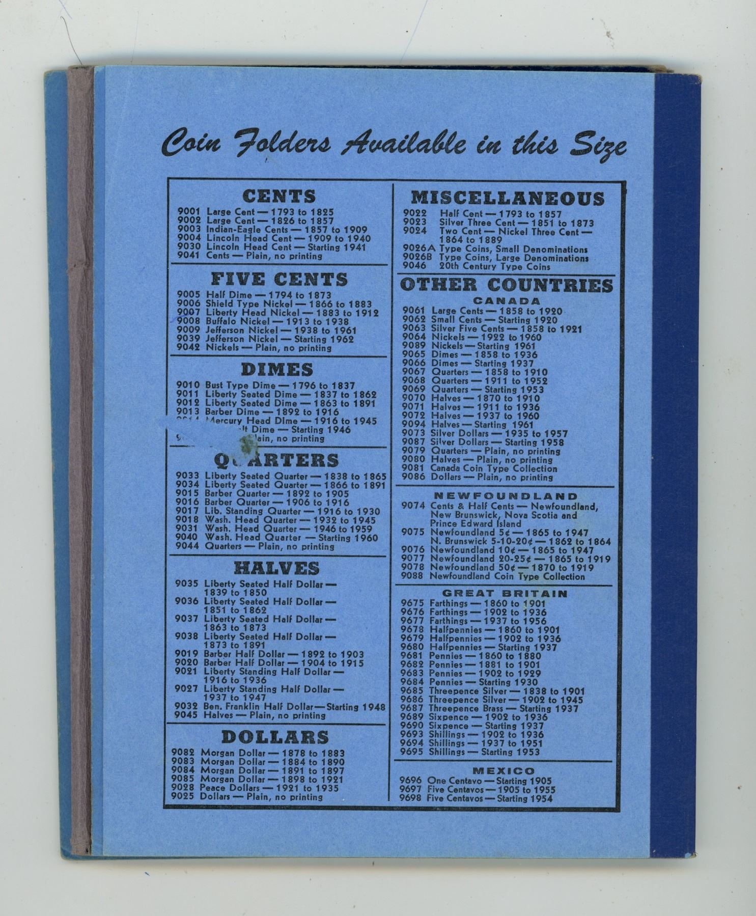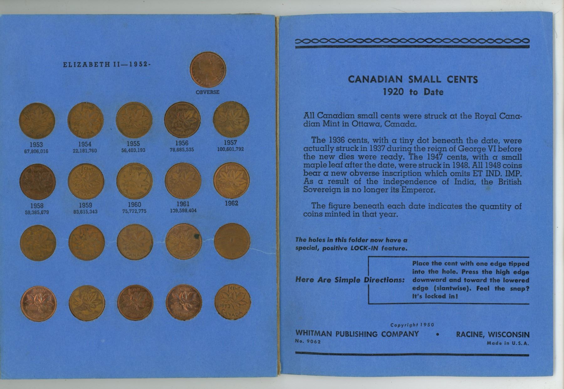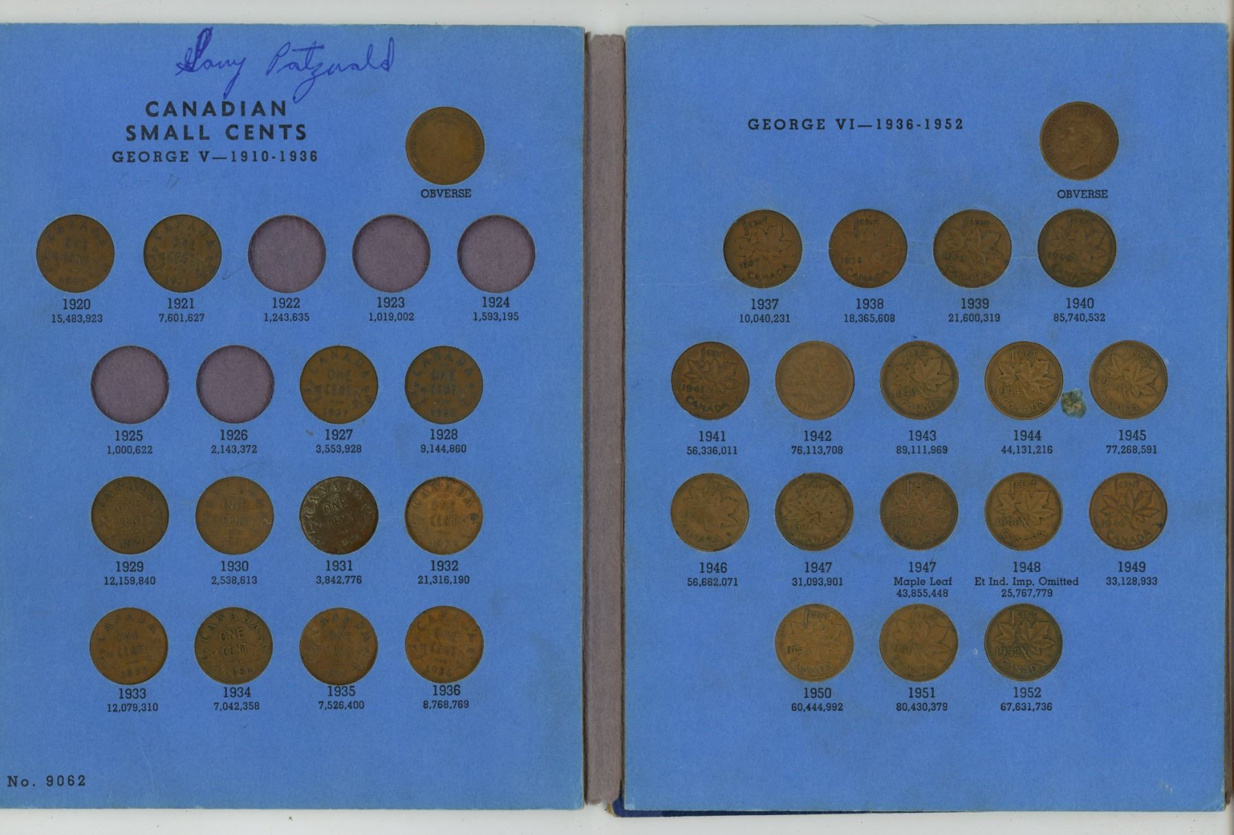 Canadian Small Cent Collection 1920 – 1972. Missing only 1922 – 1926. Housed in a blue Whitman folder.