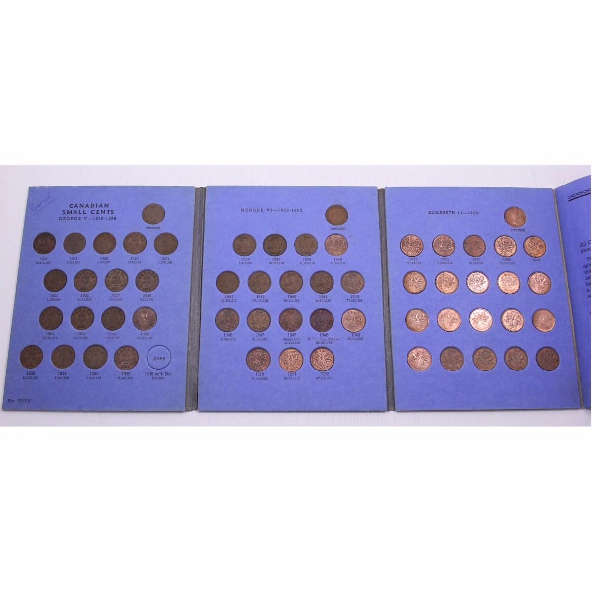 Canadian Small Cent Collection 1920 to 1972 in Blue Whitman Book, including all key date coins from 1922 to 1931 (missing 1936 Dot). Sold as is, no returns. Buyers Premium will be added on all items as per our terms of sale. We accept Paypal, Credit Card, E-Transfer Payments, Cheque or Money Orders (there is an additional 3% fee for using Paypal or Credit Card). All invoices will be emailed immediately following the auction, please contact us if you would like to pay by credit card or receive a new revised lower total for mailing in payment or sending an e-transfer (3% discount). All Items Are Sold "AS IS", no returns