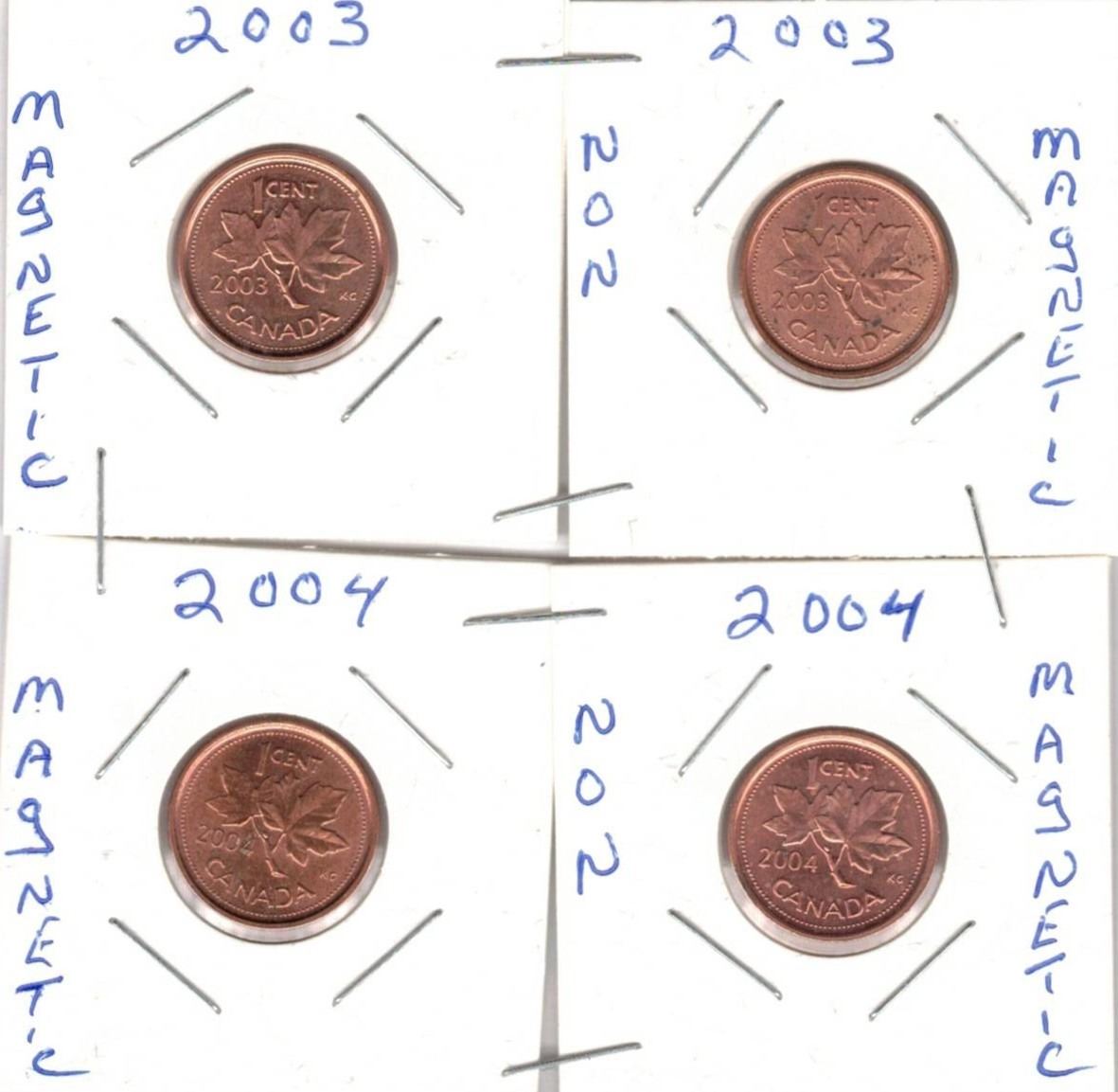 Canadian Small Cent Pennys, Magnetic and Non-Magnetic