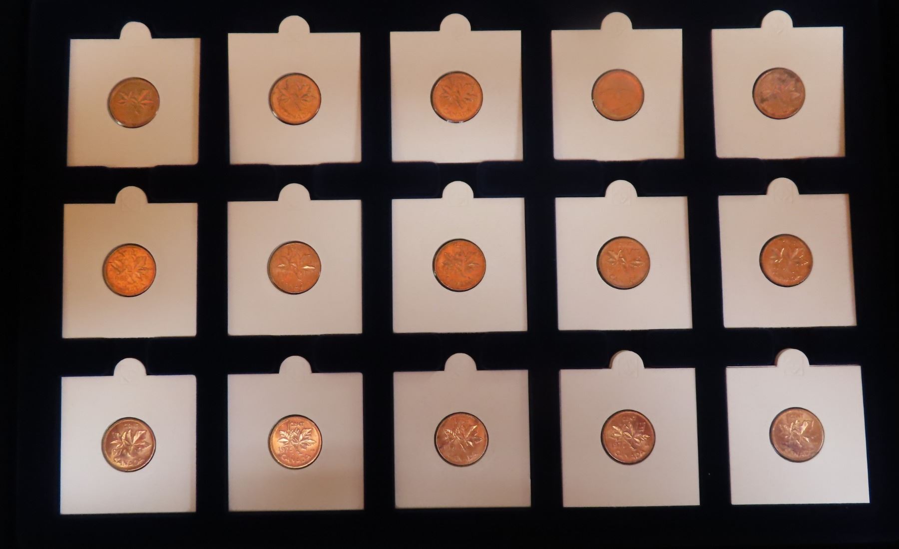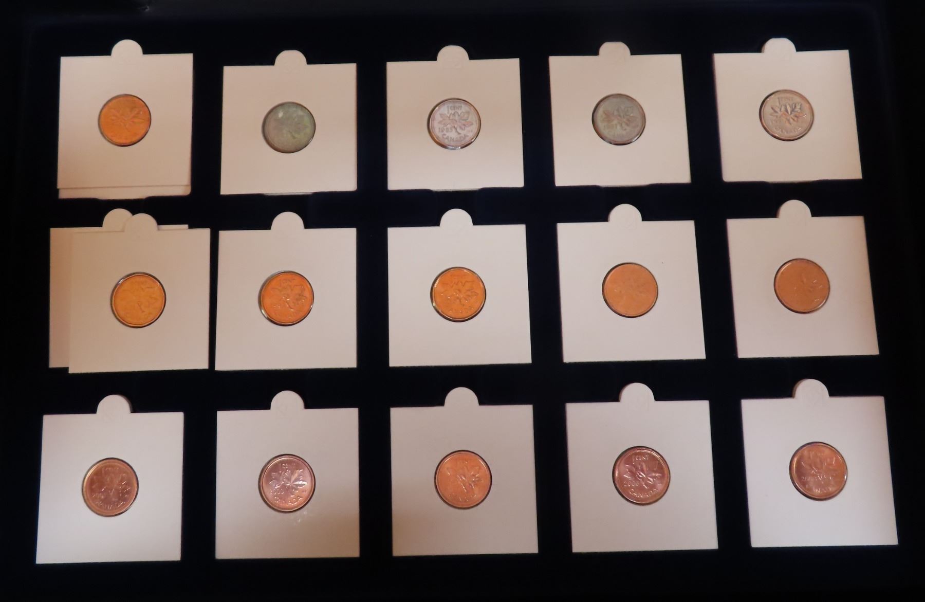 Canadian Small Cents Collection. Consists of 75 coins from 1936 – 2009. Most coins are BU Red. Housed in a fancy Numis album.