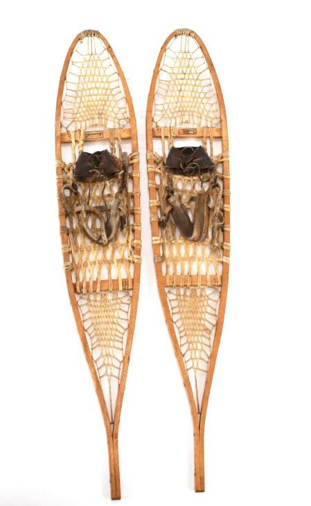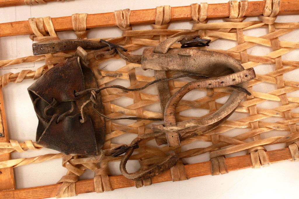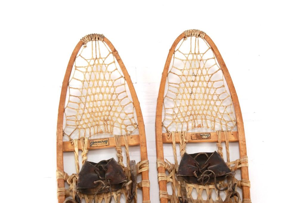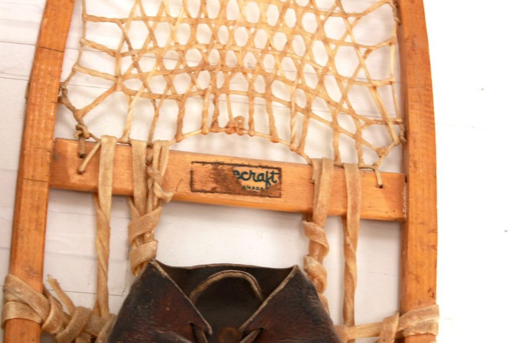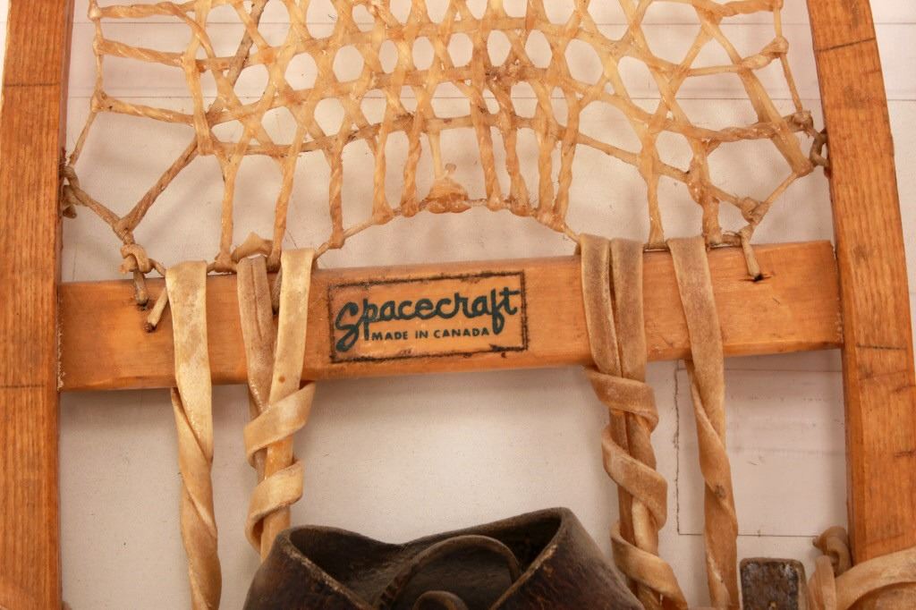 Featured in this lot is this Canadian made Spacecraft wooden and rawhide snowshoes. The pair of snowshoes features a wonderfully and professionally crafted wooden and rawhide construction that shows thick harness leather binding to the snowshoes. The snowshoes are marked as follows: Spacecraft - Made in Canada. The condition of this pair of snowshoes is well preserved with no obvious signs of damage and shows good overall condition. The measurements of this pair of snowshoes is 56" x 10 1/4". The collective weight of this pair of snowshoes is 6lb 2oz.