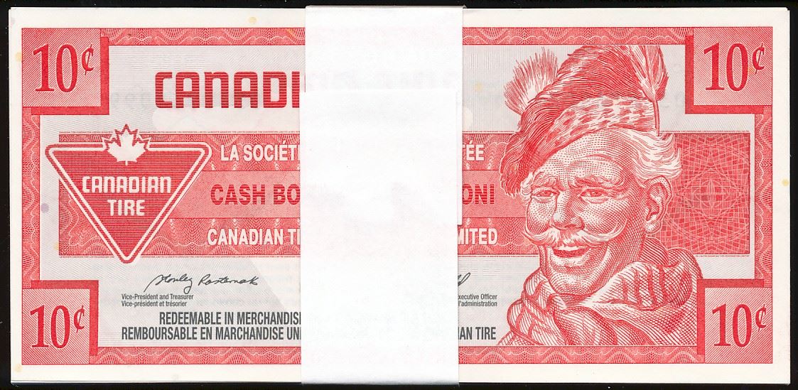 Canadian Tire; 1992-2011 Series, 10¢ Original Bundle of 100 notes. All Original AU/UNC.
