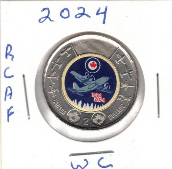 Canadian Toonie ,1924-2024, RCAF Plane With Colour, King Charles III