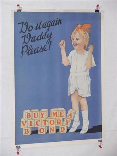 Canadian WWI Poster, "Do It Again Daddy Please! Buy Me a Victory Bond", Artist-Not Provided, Printer-W.P. 18, 24" x 18", Condition – Good: Top Border Tear and Creasing, Crease to Bottom,