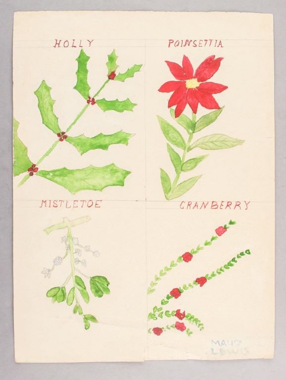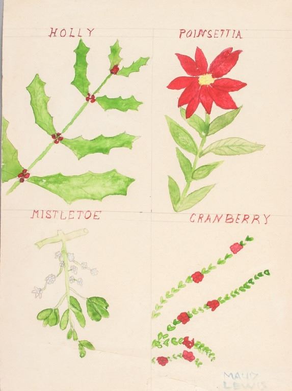 Watercolor on paper. Featuring paintings of different flowers and plants. Signed "Maud Lewis" to the bottom right corner. 30 x 23 cm (12 x 9 inches).