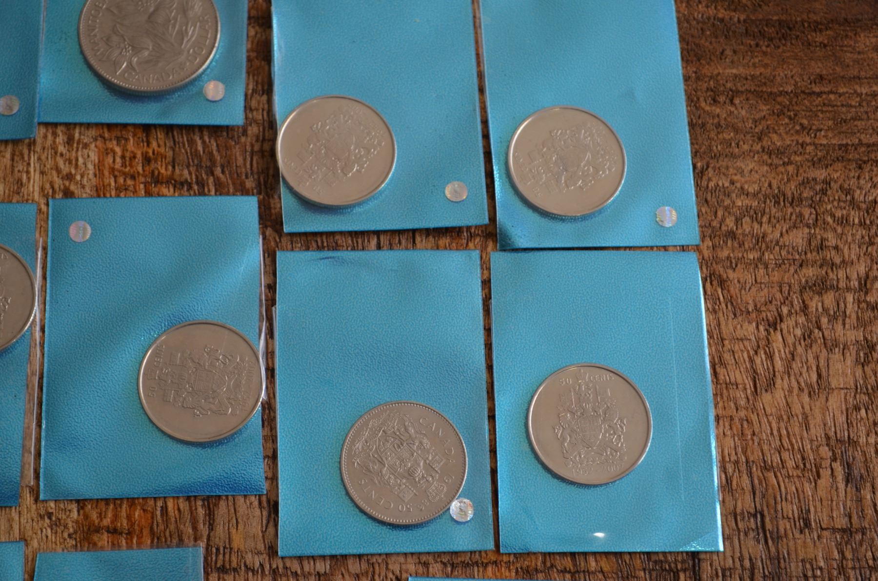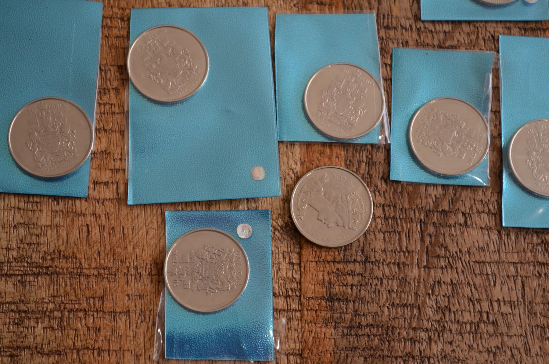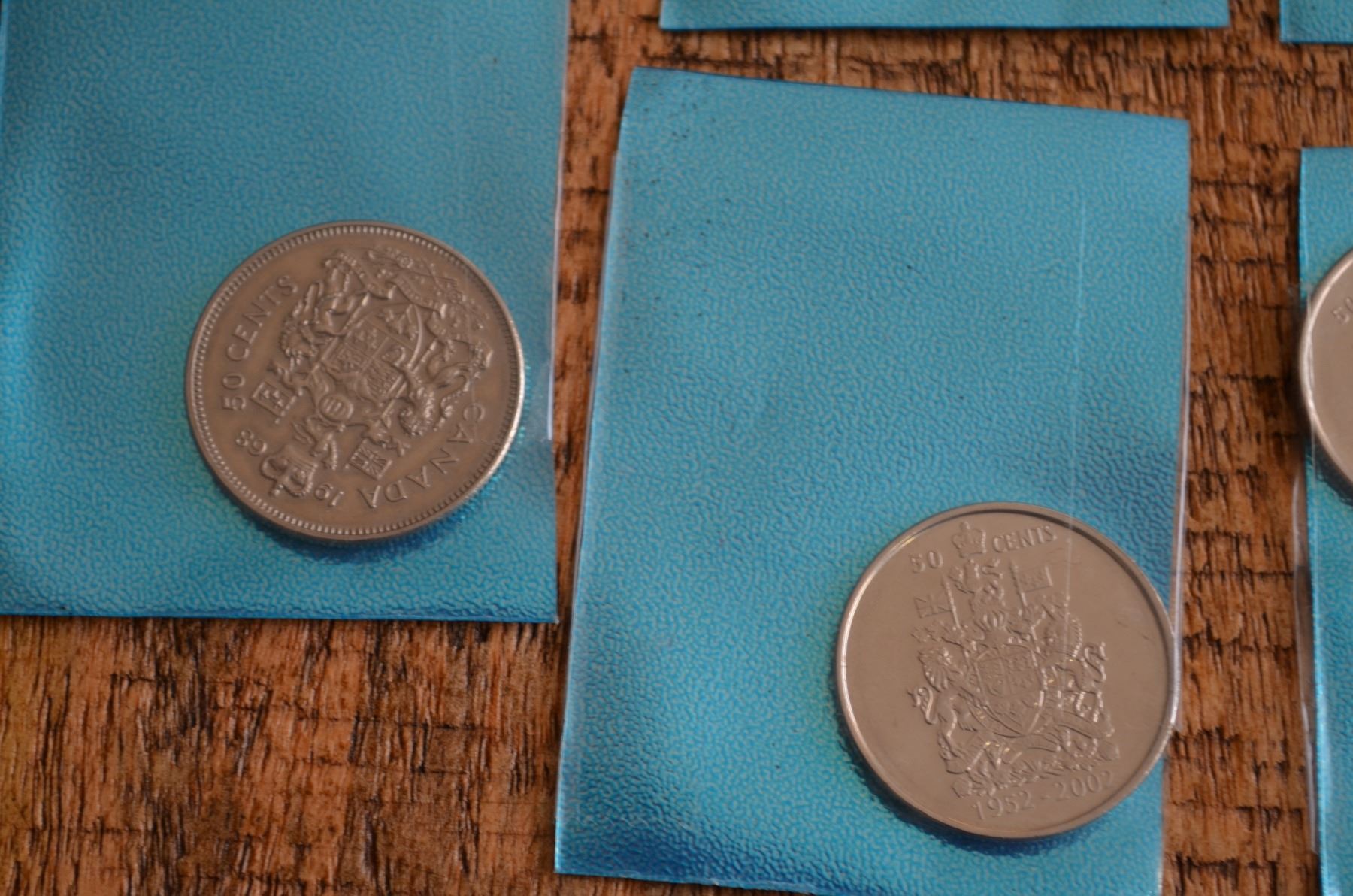 Four $1 coins, 16 50 cent coins, and a 1918 one cent coin