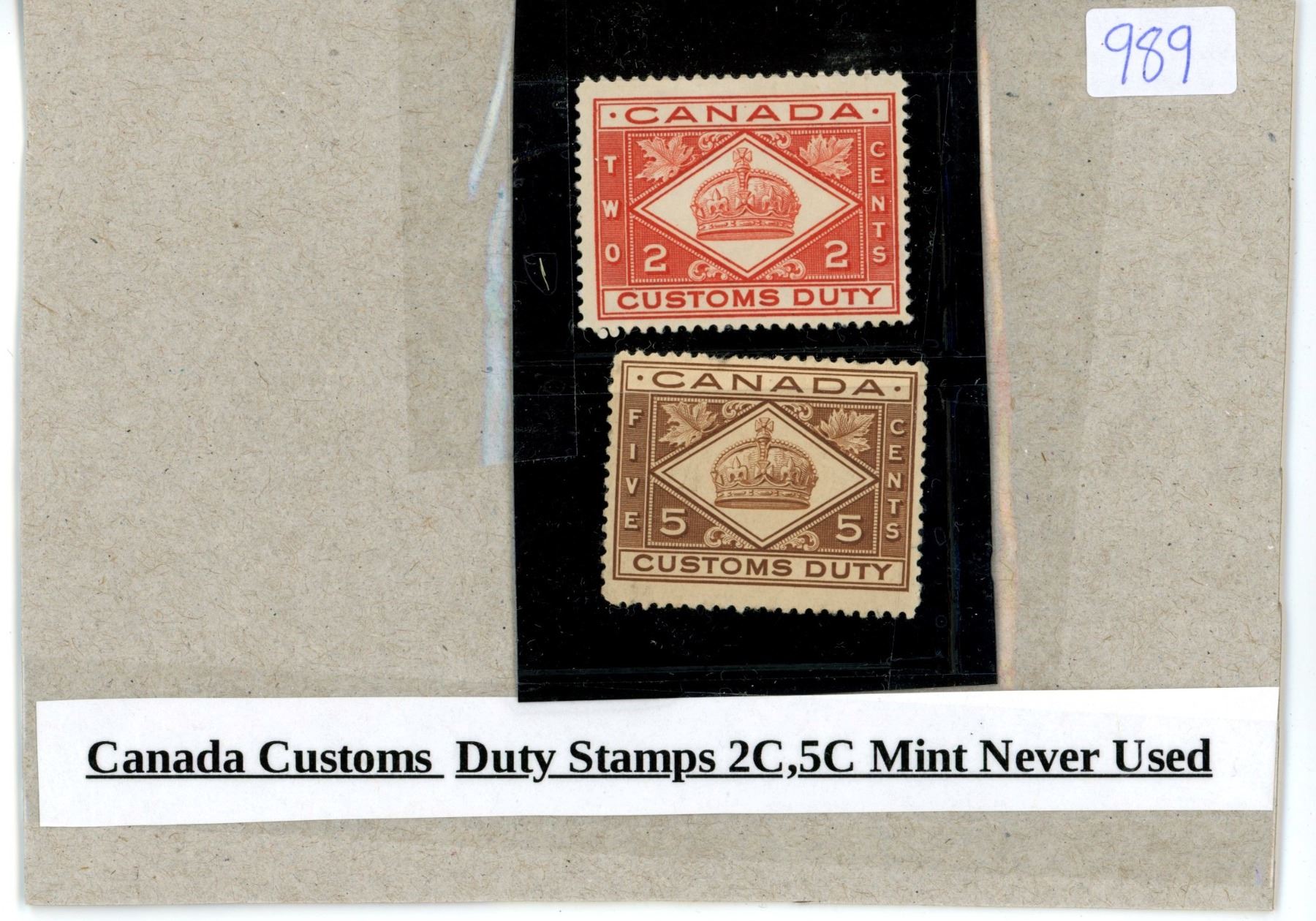 Canadian customs duty stamps, 2C, 5C - Mint, never used