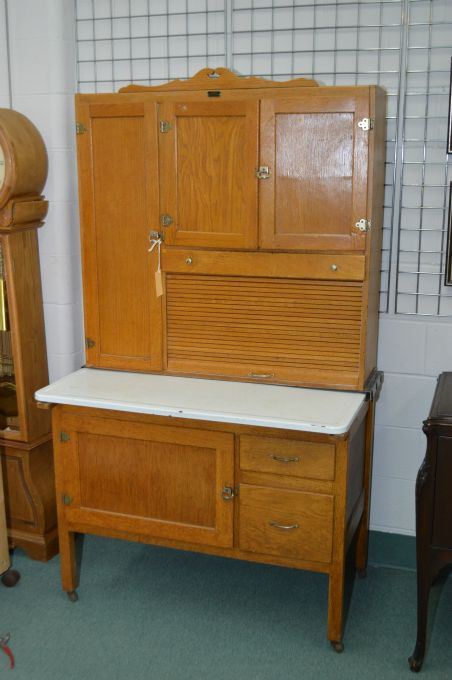 Canadian made antique kitchen cabinet with roll up section and pull out enamel baking surface