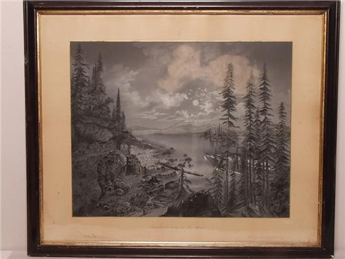Moonlight on The Lake Signed Ella Posten Hochelaga Convent 1879 Some Fogging and Staining<BR>27.5 x 22<BR>GC
