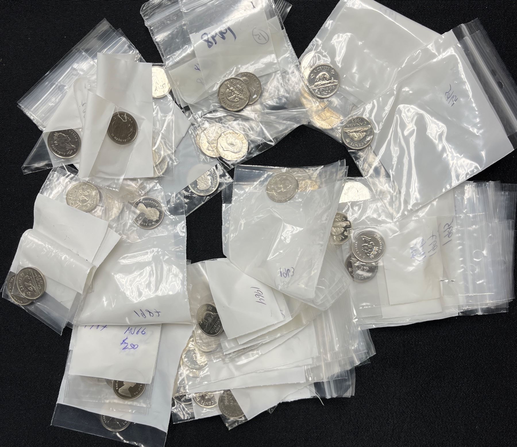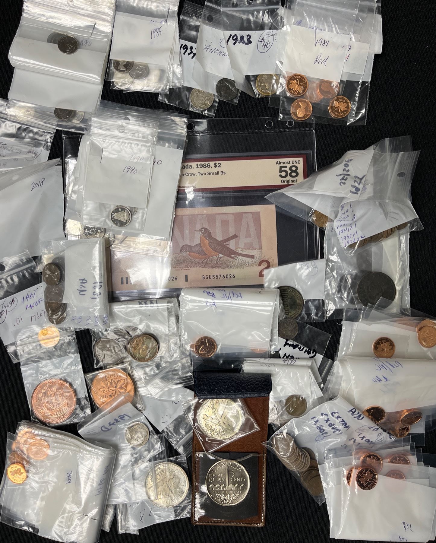 Lot includes a hand full of pre-confederation tokens & medals, a few large cents, 1910 Montreal winter carnival medal, many US coins too numerous to list and a basic Canadian decimal lot. Lot of stuff, have a look!