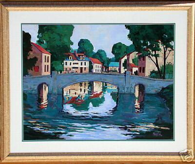 Canal by Baker ~ Rare Venice Canal A Bright wonderful poster unavailable anywhere else... Piece is signed in the plate and is not numbered. Perfect Condition guaranteed. Framed in gold and double matted, plexiglass so as not to break.. 30 x 36 Framed