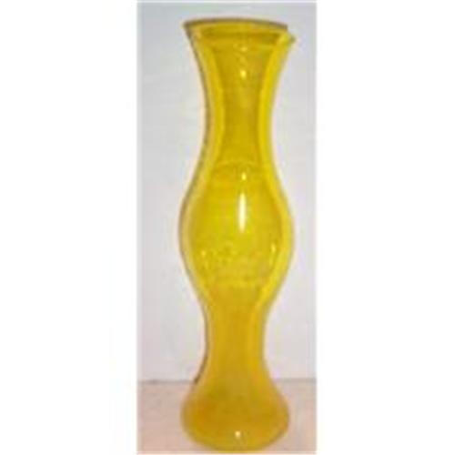 This fantastic Canary Yellow Vase is in SUPERIOR condition with no chips, cracks, or dings and it measures 2" in diameter and stands a very stately 9" tall. Sorry to say I don't know the manufacturer.