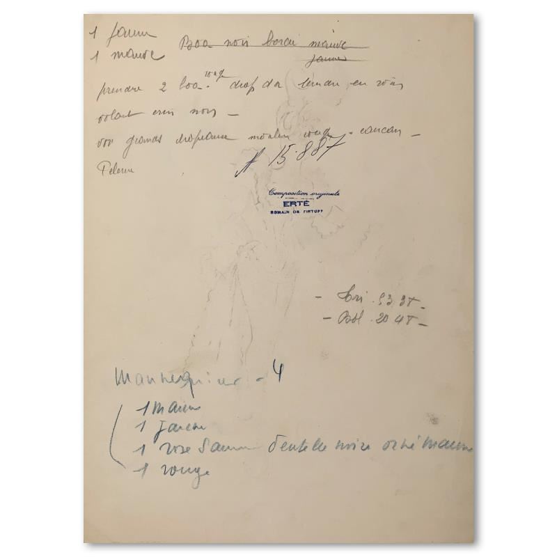 "Cancan, deuxieme mannequin" is an original gauche painting on paper by Erte (1892-1990), hand signed by the artist. This piece bears the stamp, title and registration number 15.887 inverso. Includes Letter of Authenticity. Measures approx. 10.5" x 14.5".