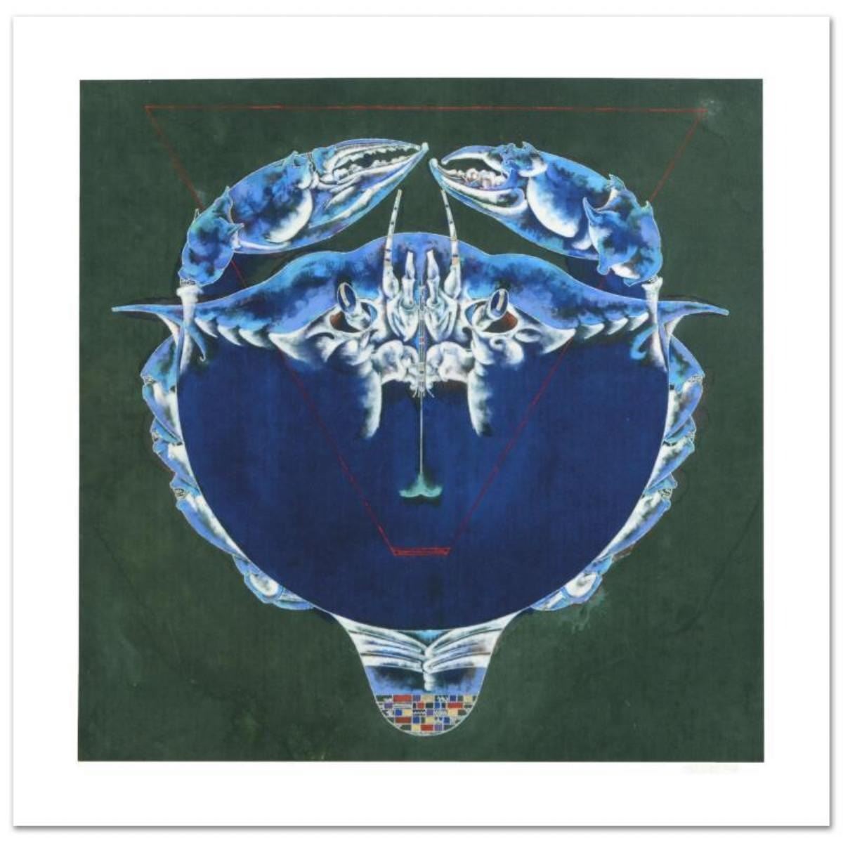 Cancer by Hong, Lu. The zodiac is a phenomenological study, formed by coordination between 12 specific constellations in space and birth of one specific human being in time, contrasting 12 signs that guide the meditation of love, fate and purpose of one's life. "Cancer (6/22 - 7/22)" is a limited edition giclee on paper by talented Chinese artist Lu Hong, numbered and hand signed by the artist! Measures approx. 24" x 24" (with border), 20" x 20" (image).