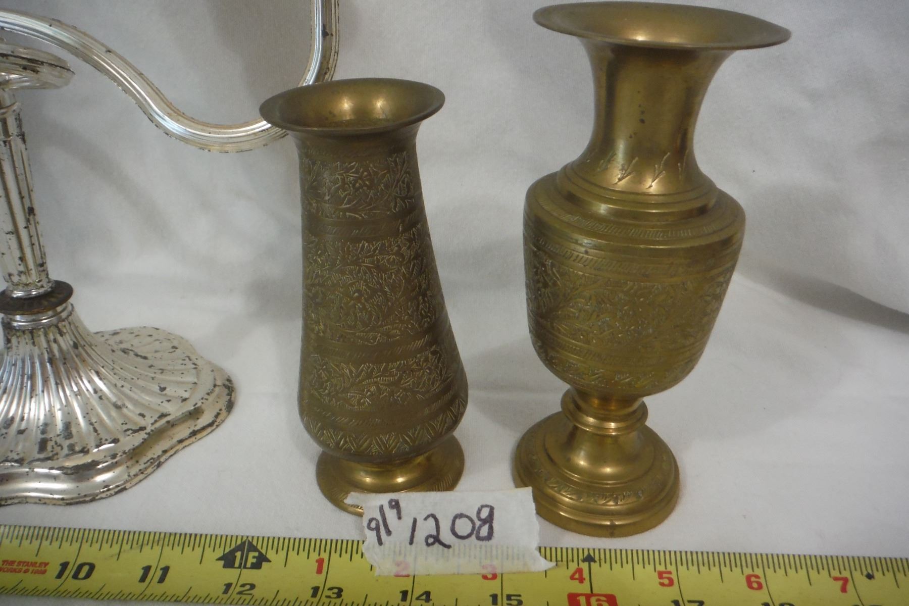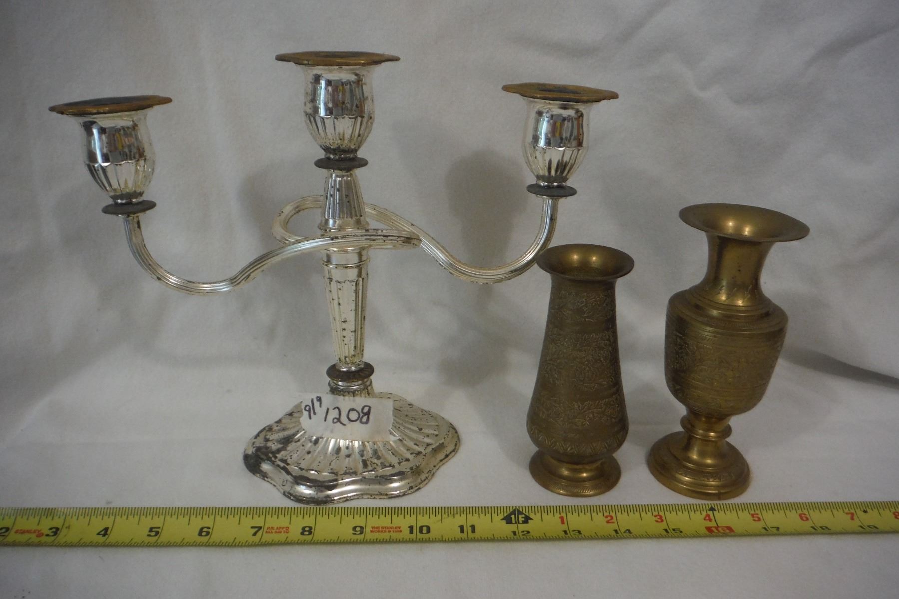 Candelabra and 2 brass vases