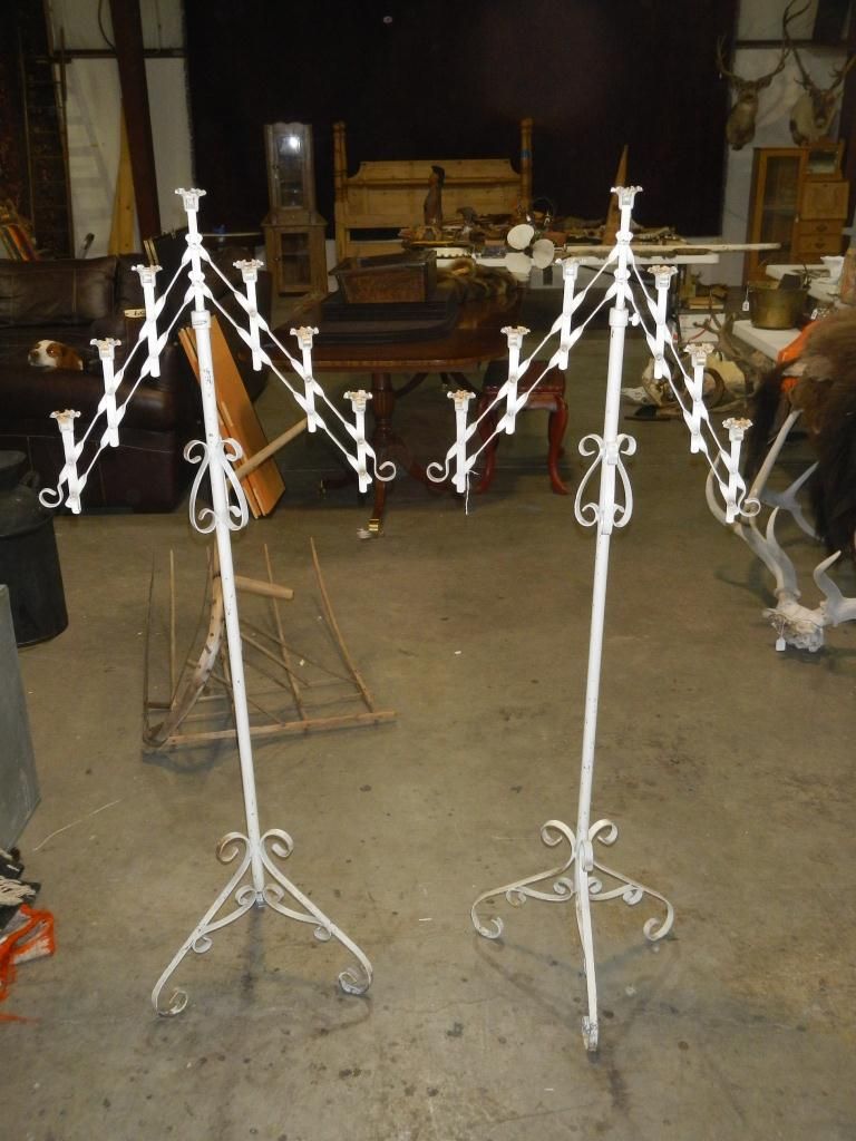Candelabras - This is a pair of old candelabras that have a white color. These are both in working condition and sit 59" high and can exstend much higher.