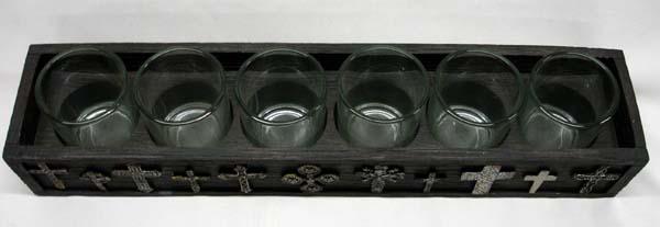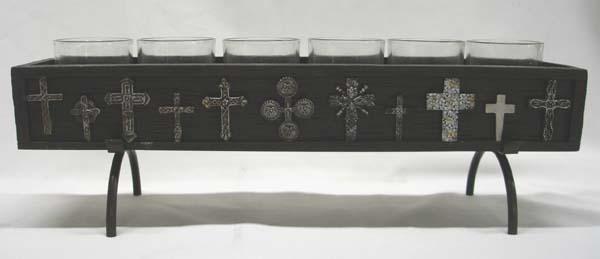 Candle Holder Tray w/Cross Designs for 6 Votives. Measures 14.25''Lx5''Hx4''W. Made in China for Home Interiors. Buyers Pay Actual Shipping and Handling Charges(see terms and conditions for more information)