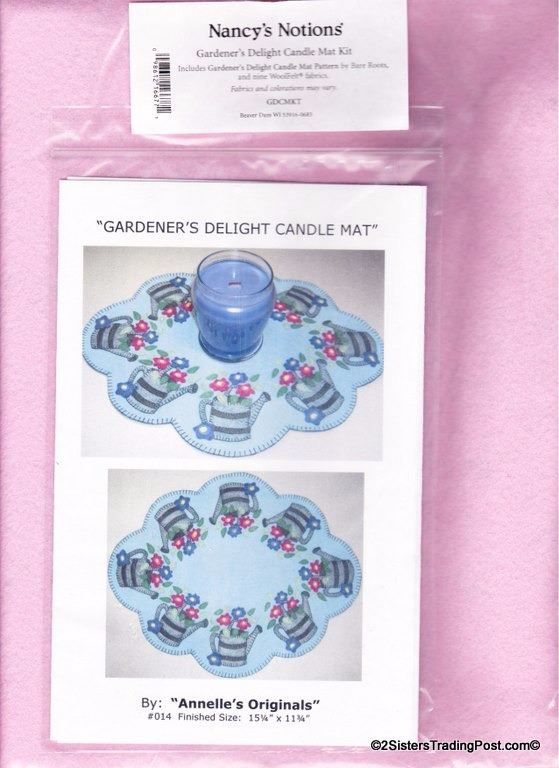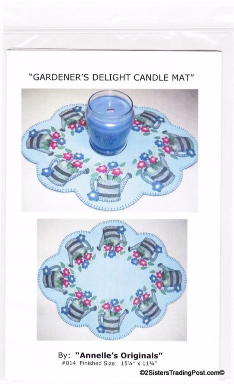 Gardener's Delight Candle Mat' Kit 3 #014 by Annellle's Originals. Kit 3 includes pattern & wool felt finished project size is 15.25" x 11.75" MSRP $18.50
