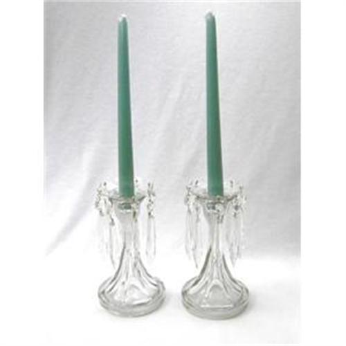 Pair, Wide Panel Candlesticks with 8 Crystal Prisms on each. (Candles not included)