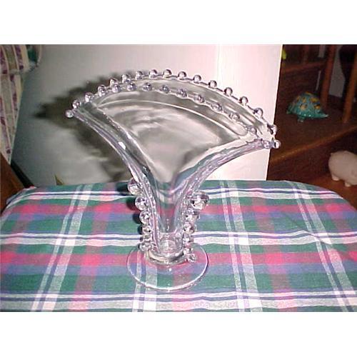 Candlewick Fan Vase; 8.5" tall; 8" spread, lrg beads on sides.