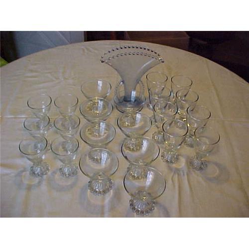 Box Lot of Candlewick Glass Collection; (c)1949-1951; (8) Sherberts; (8)Footed Juices; (6) Cocktails; (1) 8" Fan Vase; (23) Pcs. in total No dings, cracks, etc.