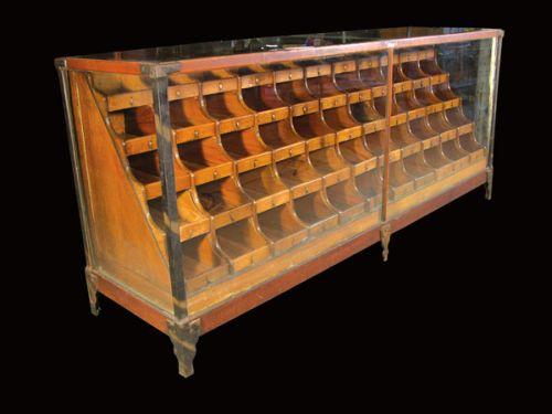 Candy Store Showcase with 55 drawers. Good original condition. 8 foot long X 41 inches tall X 25 1/2 inches deep.