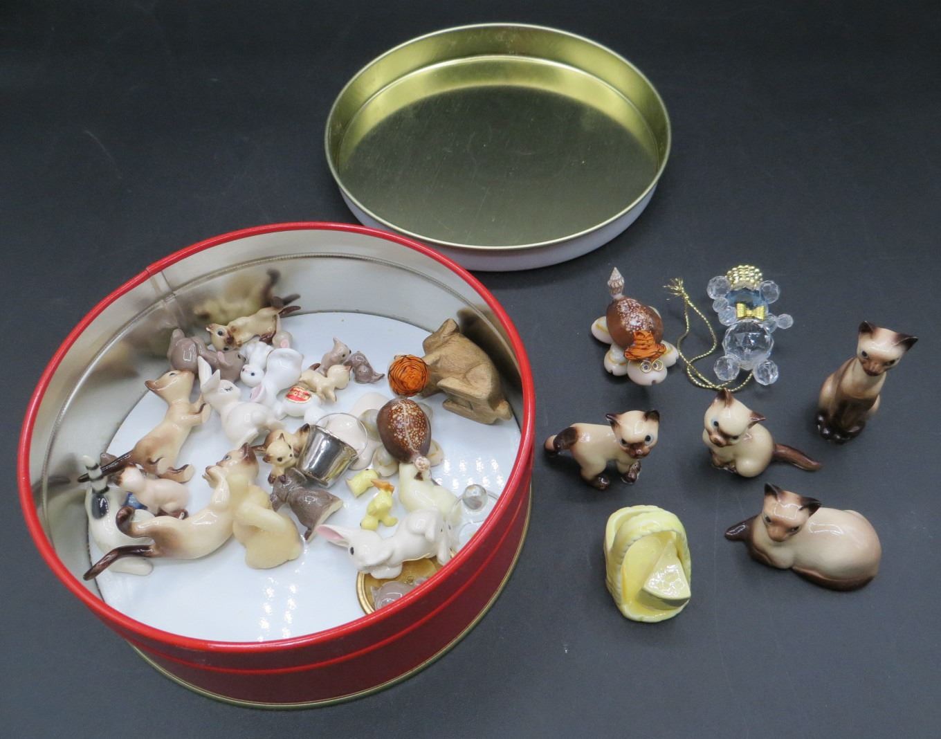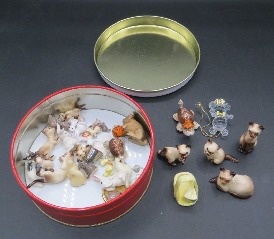 Candy Tin With Various Mini Collectible Figures Cats, Mice, Rabbits, Turtles & More