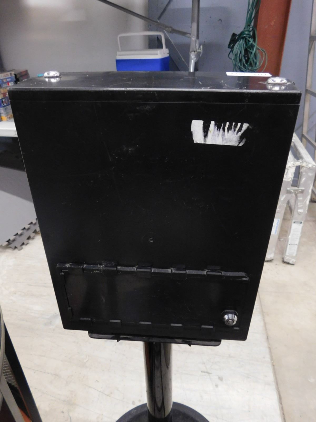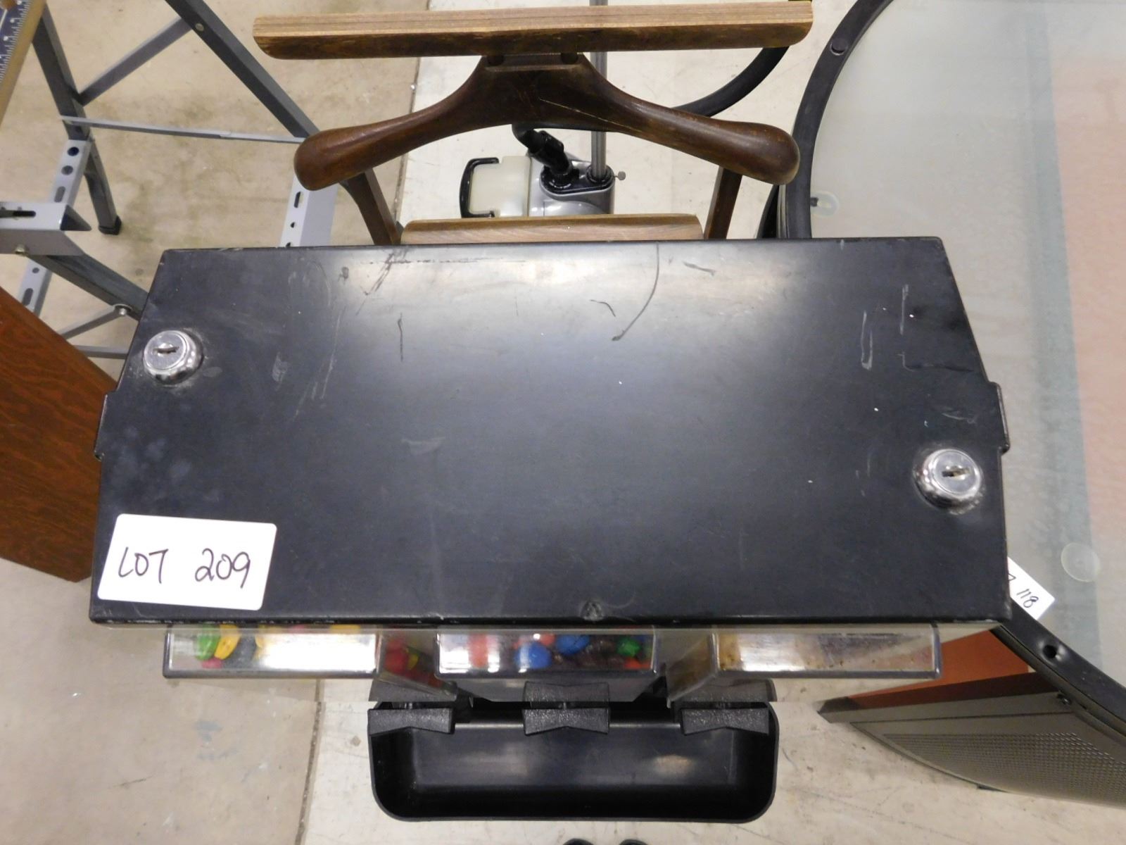 Doesn't include key. Candy inside is old and should be discarded. Just under 4ft tall with 17" diameter base