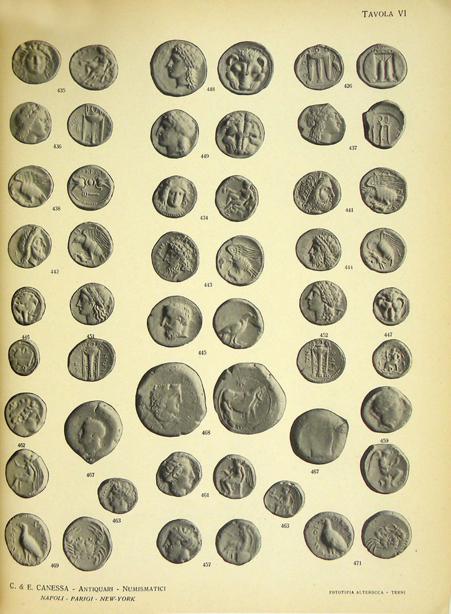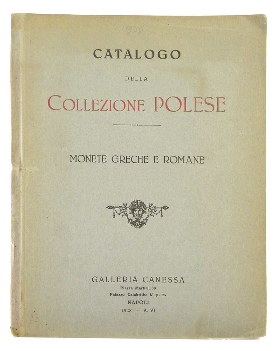 Canessa, Galleria. COLLEZIONE POLESE. MONETE GRECHE E ROMANE. Napoli, 12 Giugno 1928 e giorni seguenti. 4to, original printed card covers. (8), 61, (3) pages; 1204 lots; 16 fine plates of coins with tissue guards. Spine taped; else near fine. Clain-Stefanelli 1757. Grierson 286. Spring 97.