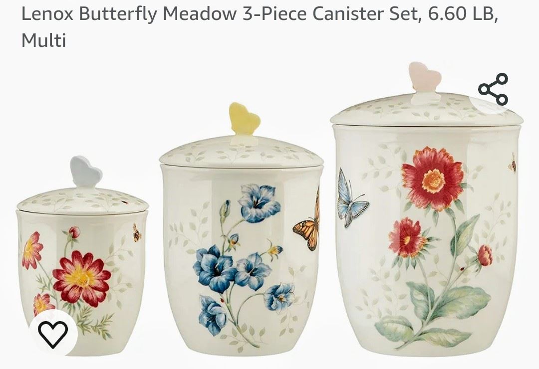 Three-piece porcelain storage with butterfly and floral motifs, includes airtight lids, new.