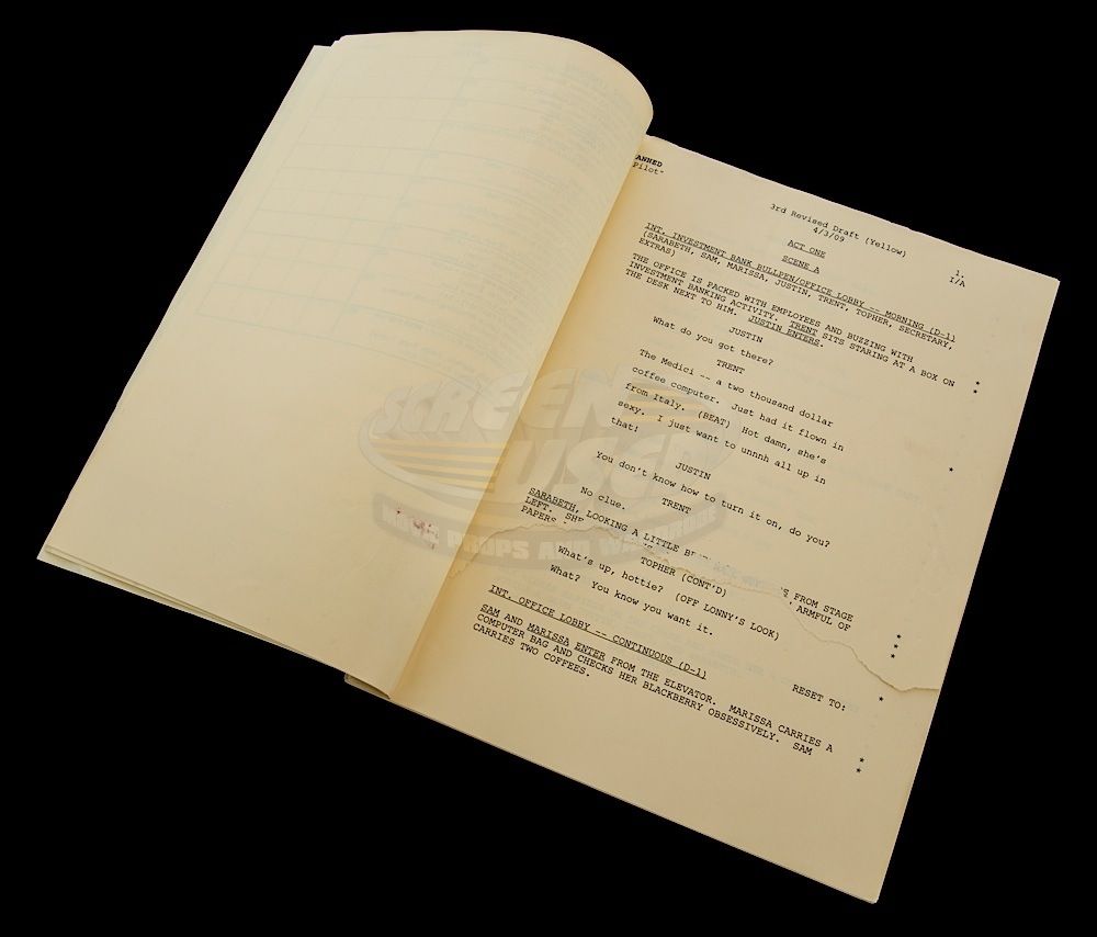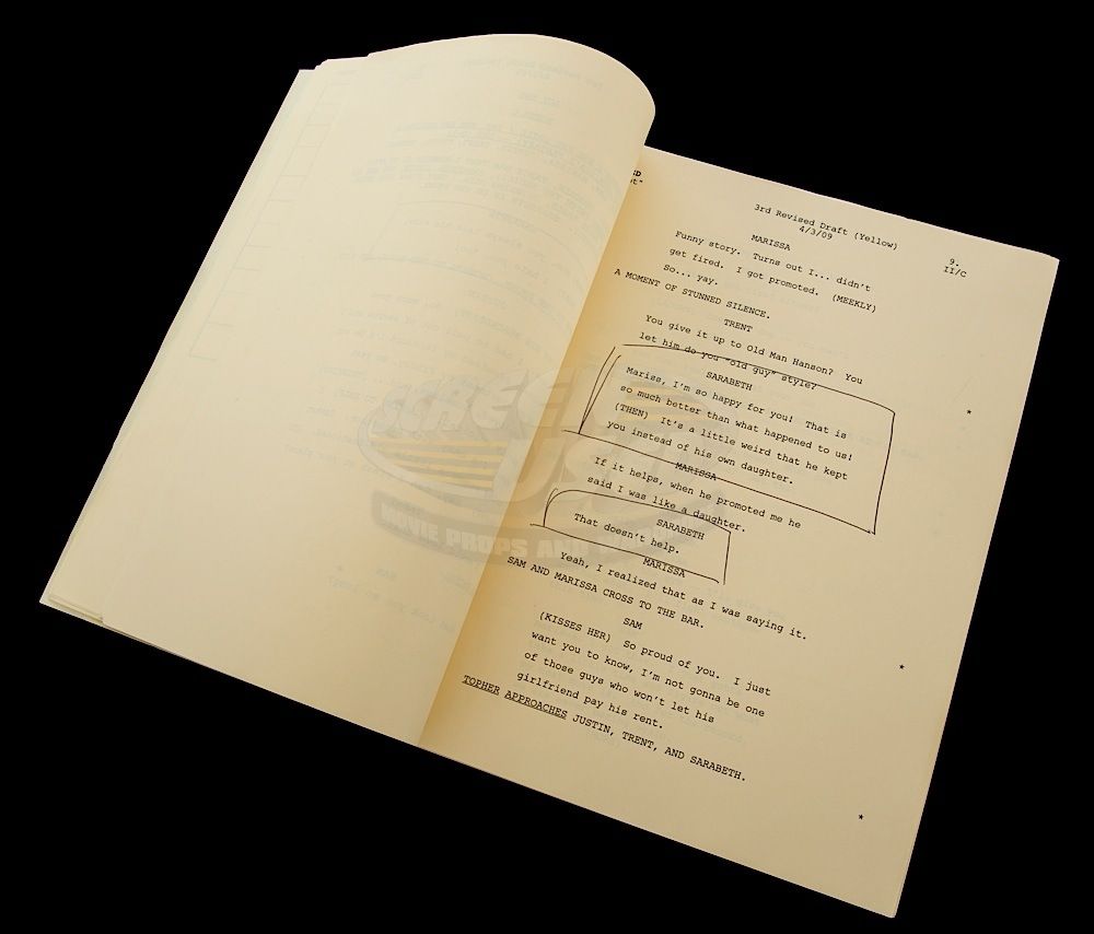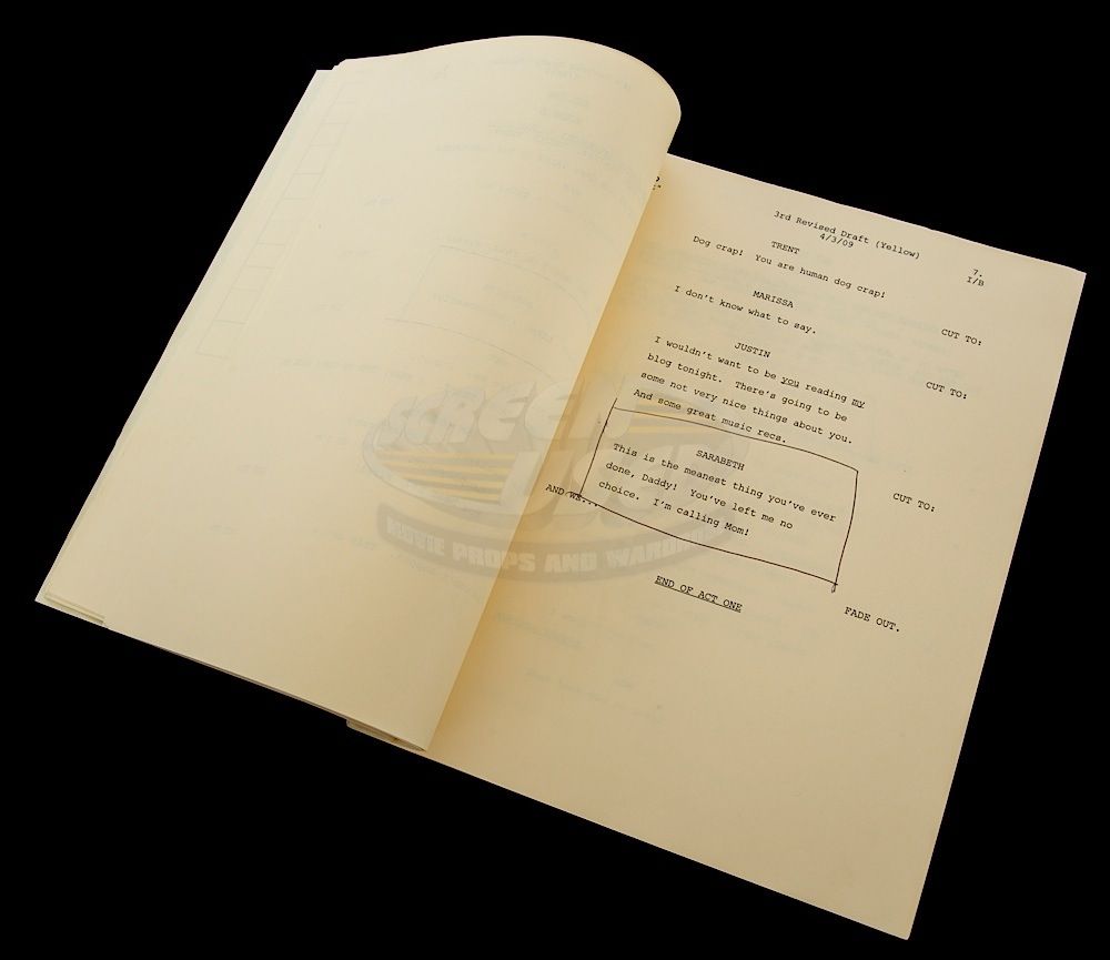 (ABC Studios, 2009) This original production script was issued to and used by Amanda Bynes during filming. The script is the 3rd draft and is dated 4/3/09 and features all yellow pages. Several pages of the script have sections of her dialog circled. Wear from use is present.