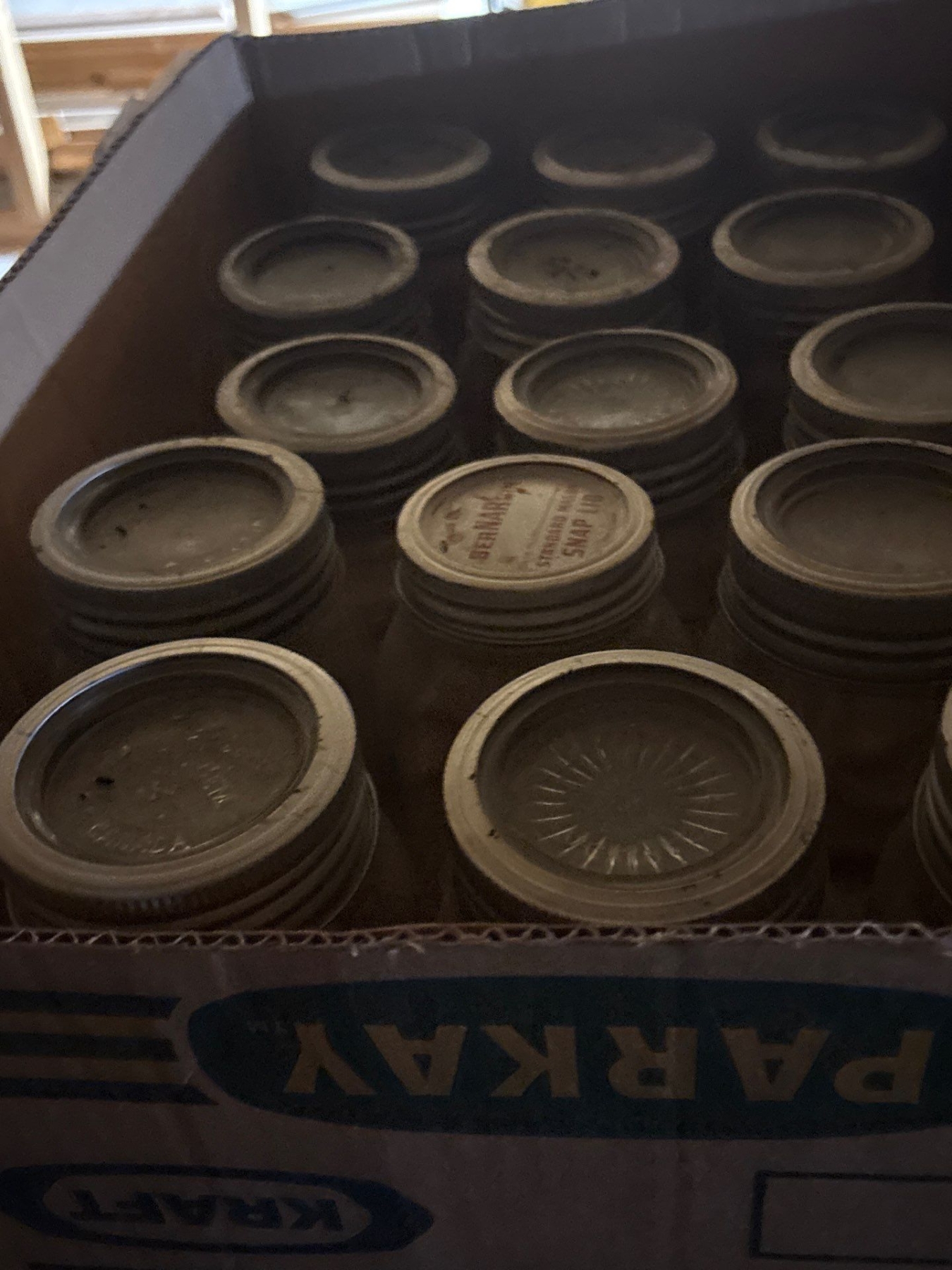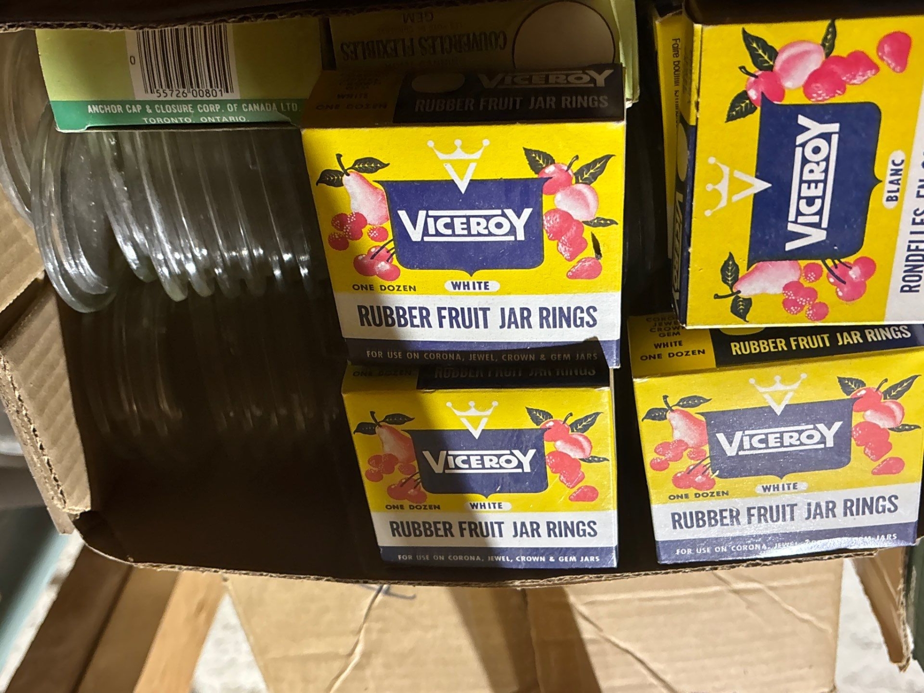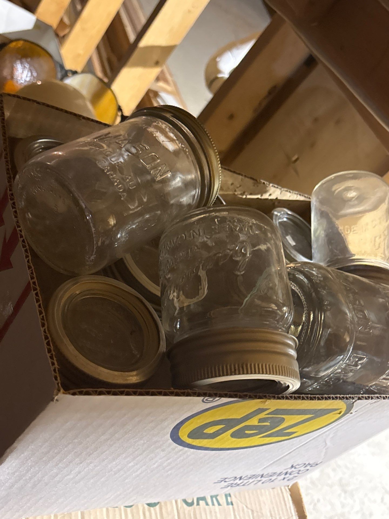 Canners dream huge amount of canning supplies, small jars, medium size jars, large jars, a number of tin tops and glass tops approximately 20 dozen buyer must pick up enough to last you a lifetime for all your preservatives and to give to all your friends