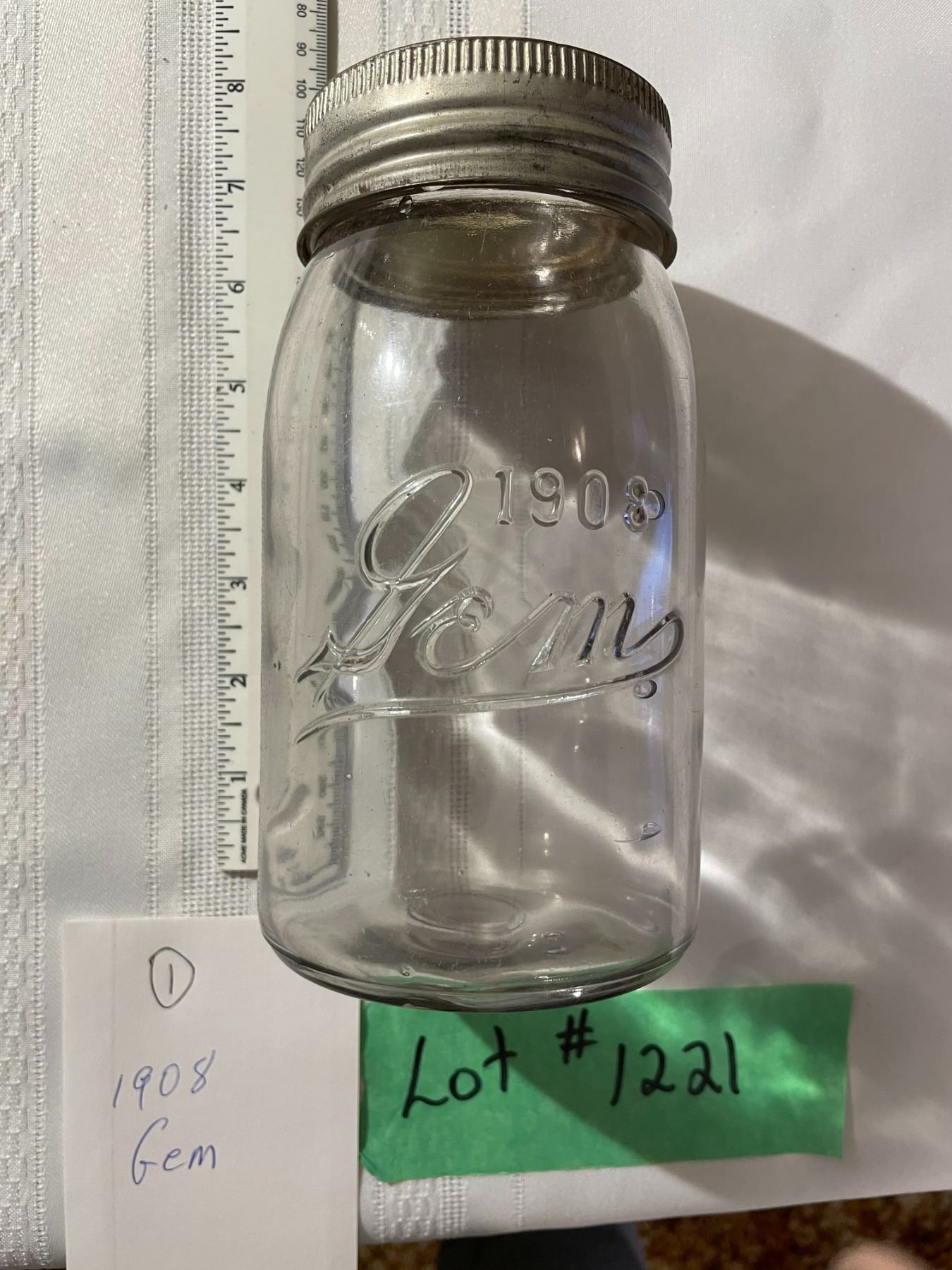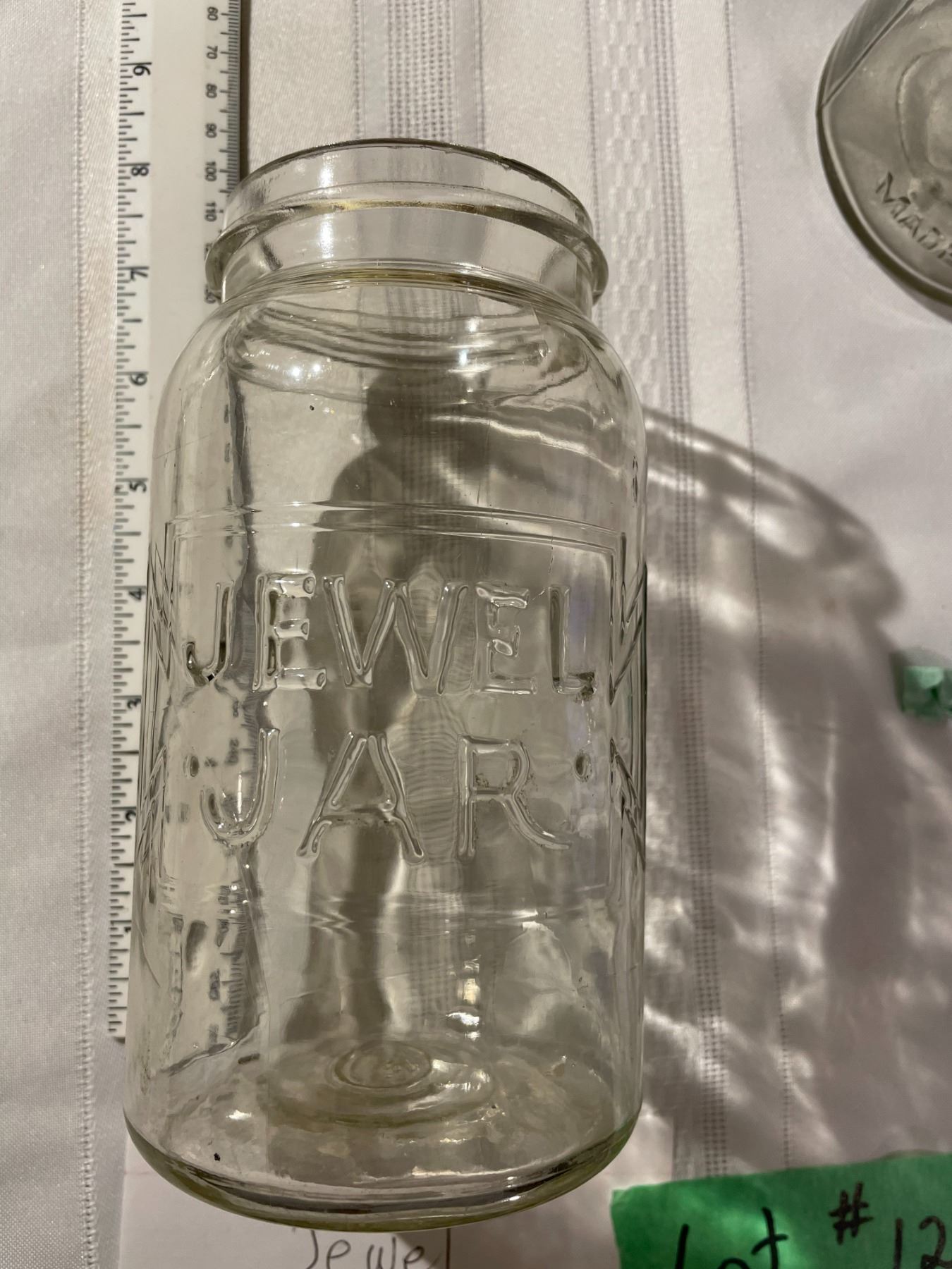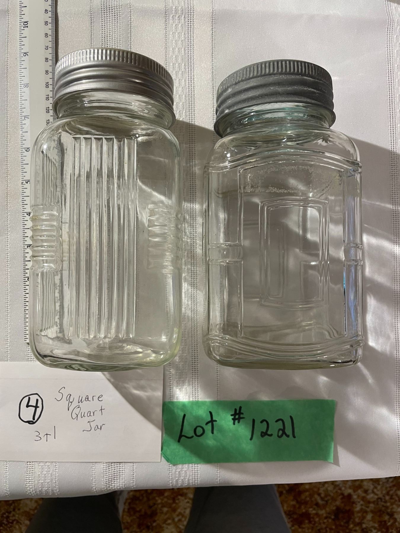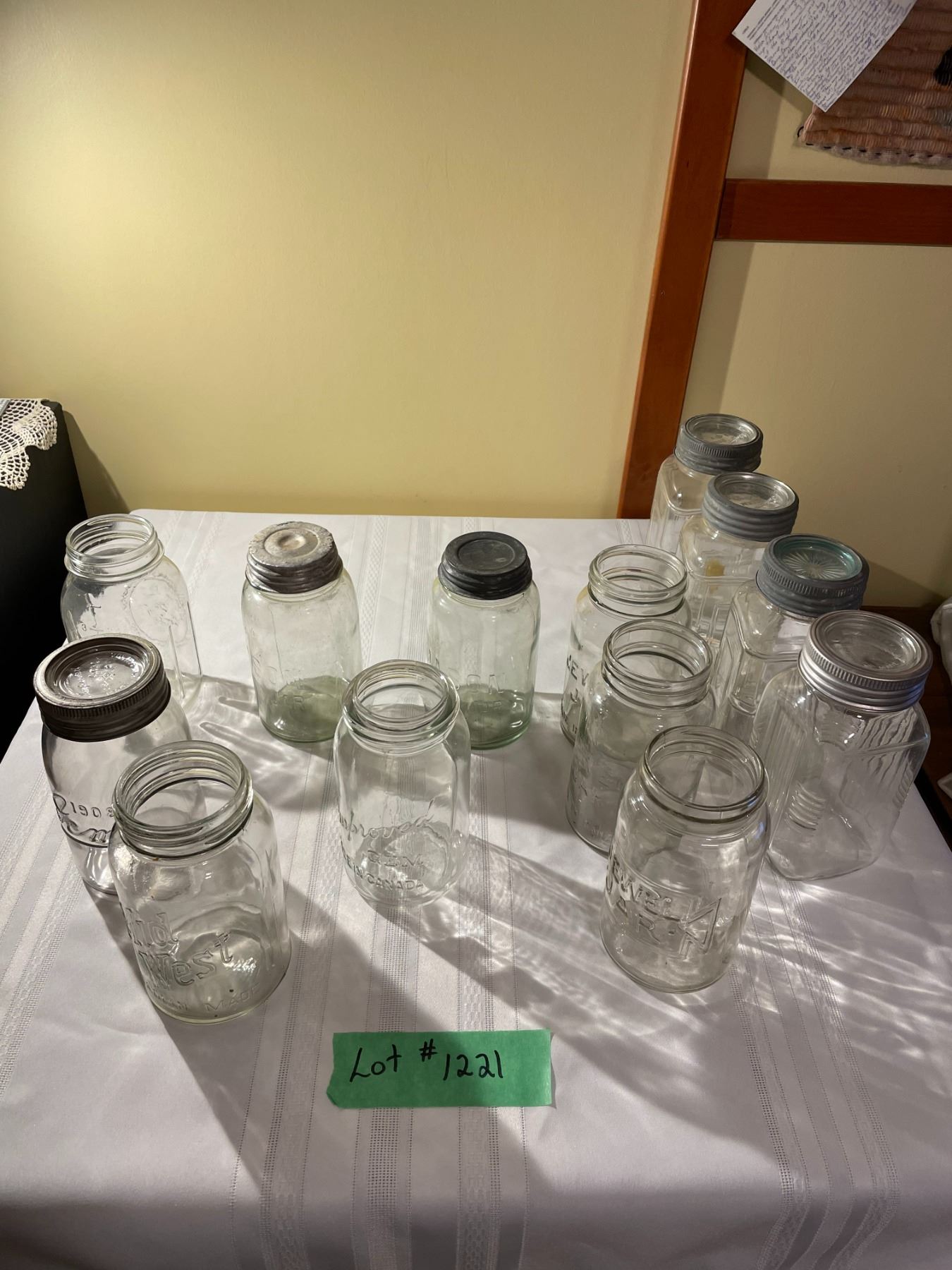 Quart Size(4)Square Jars (2) Mason Fruit Jars (3) Jewel Jars(1) Improved Gem (1) 1908 Gem (1) Ball Jar (1) Midwest