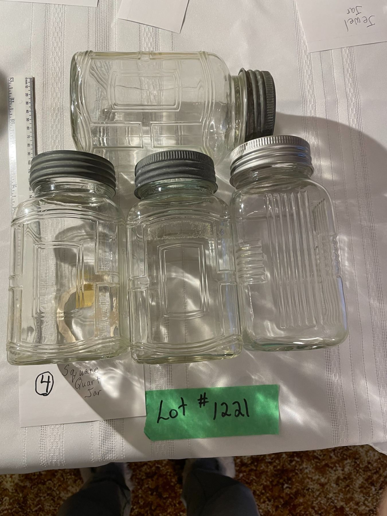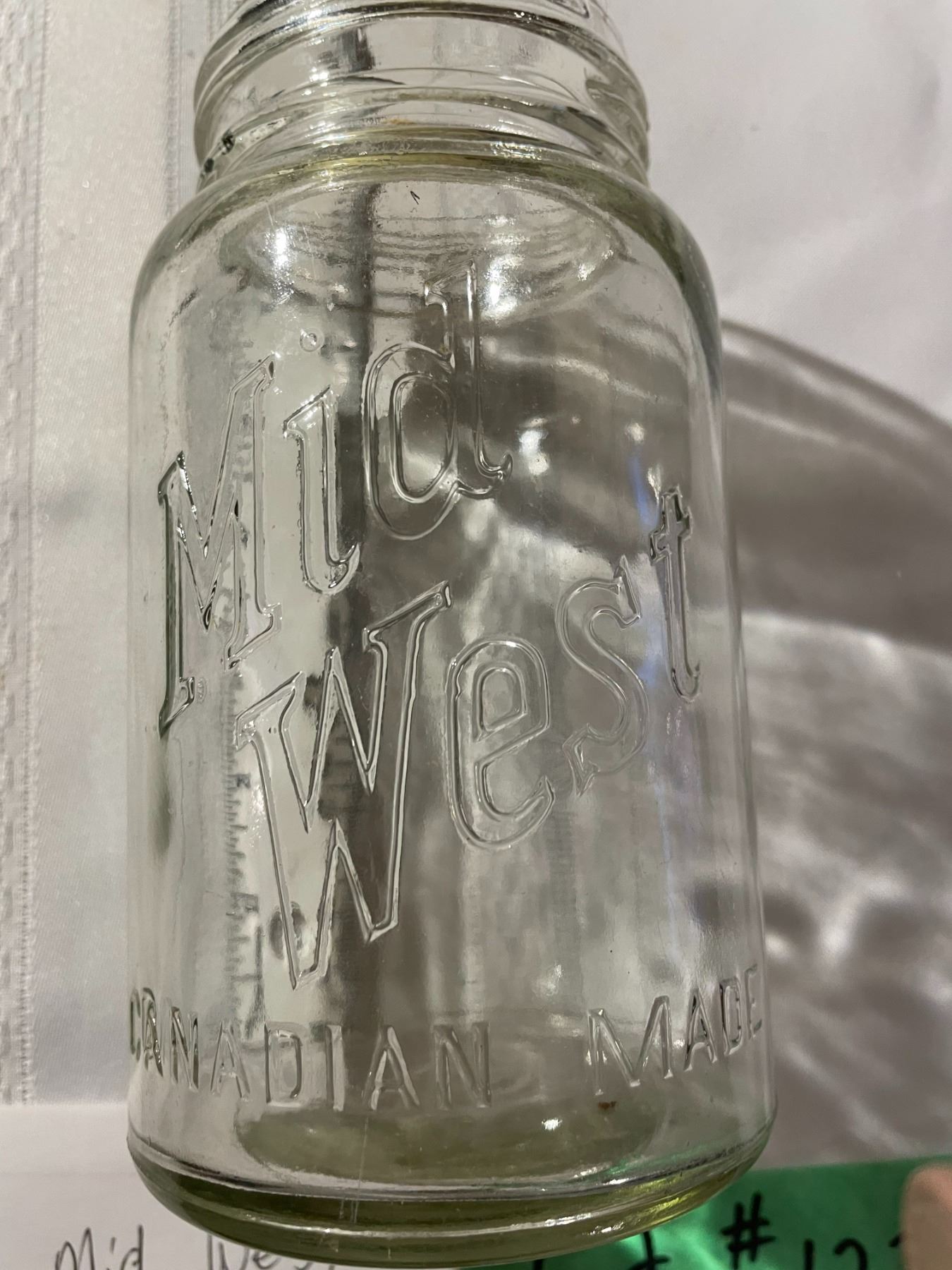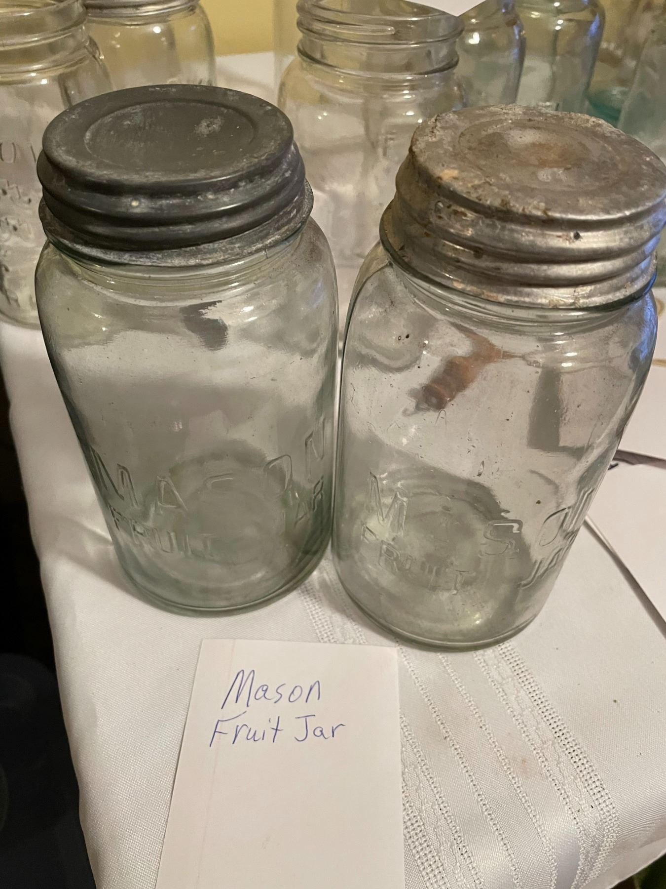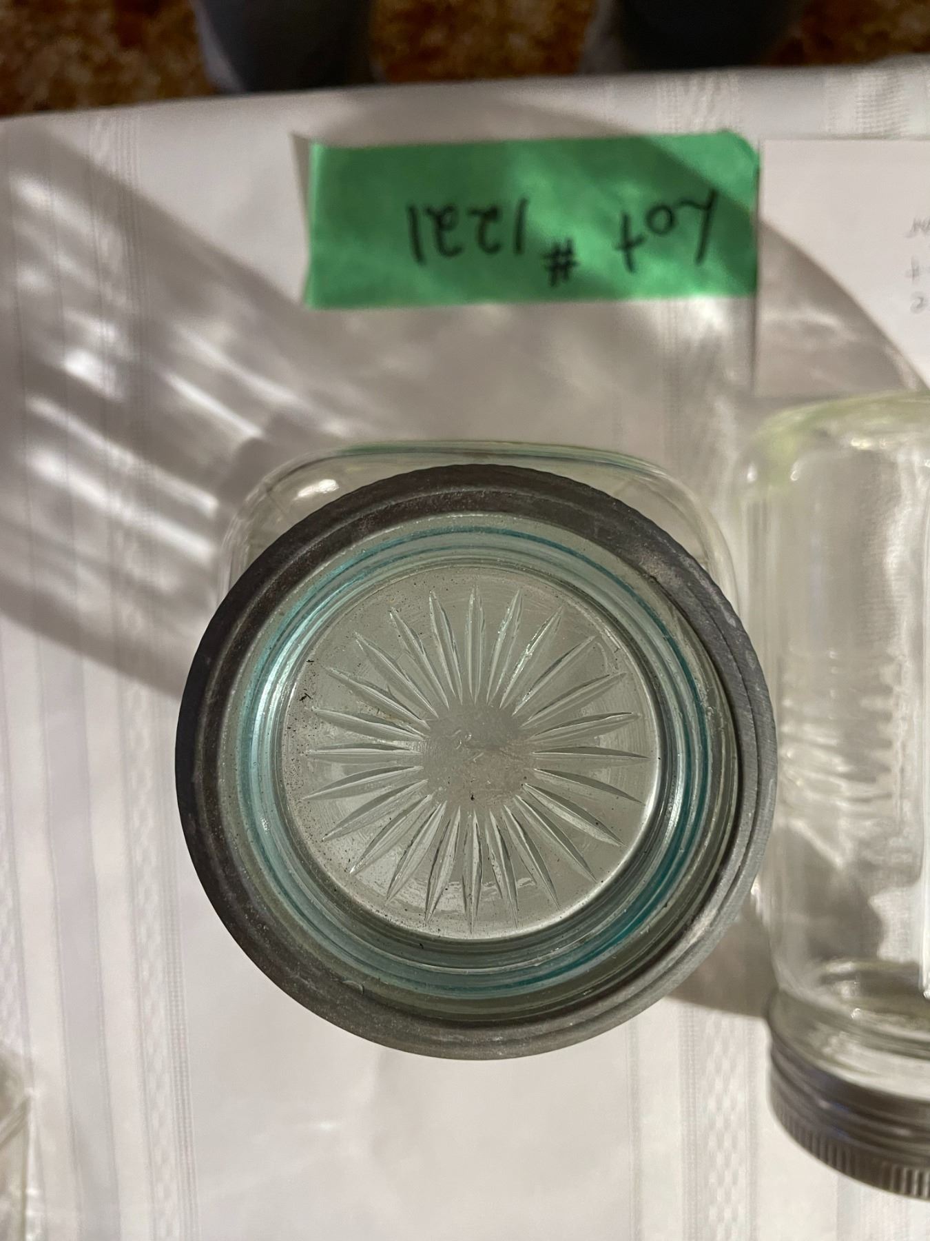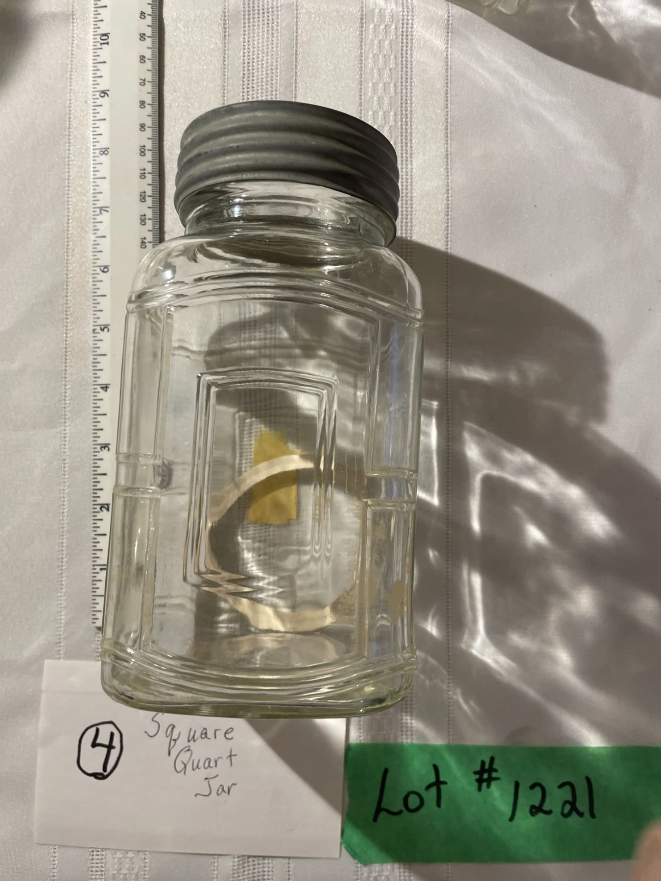 Quart Size(4)Square Jars (2) Mason Fruit Jars (3) Jewel Jars(1) Improved Gem (1) 1908 Gem (1) Ball Jar (1) Midwest