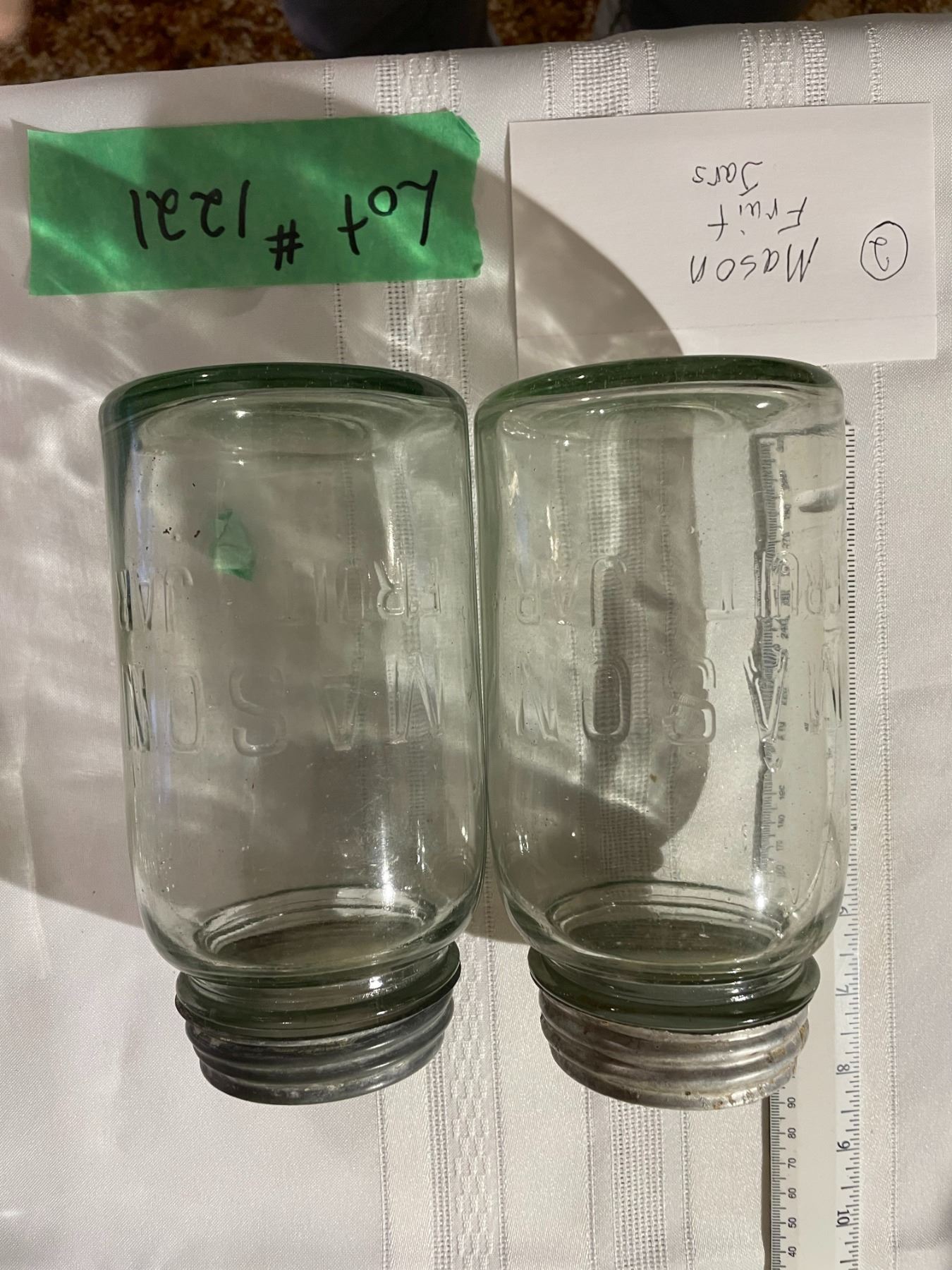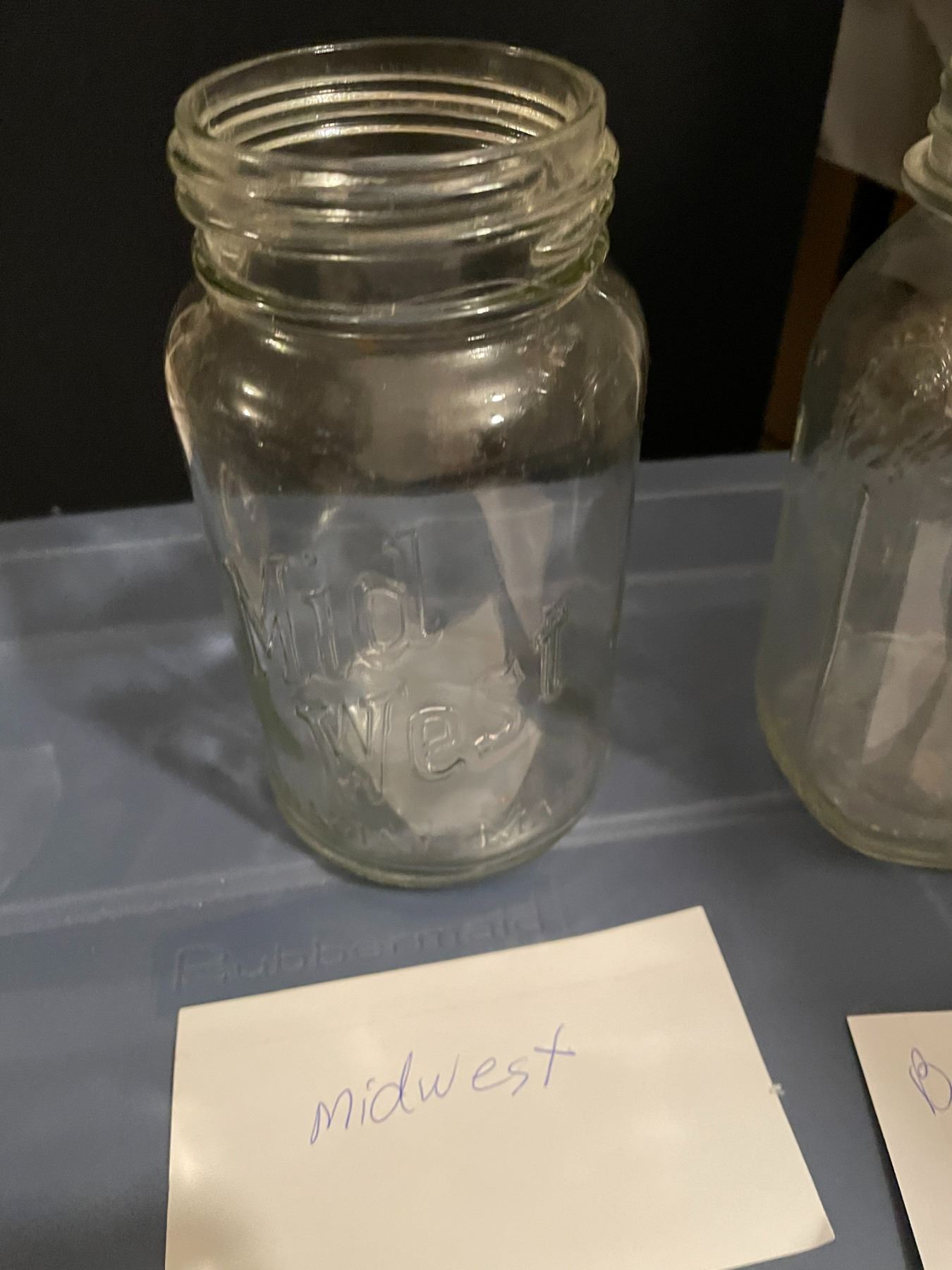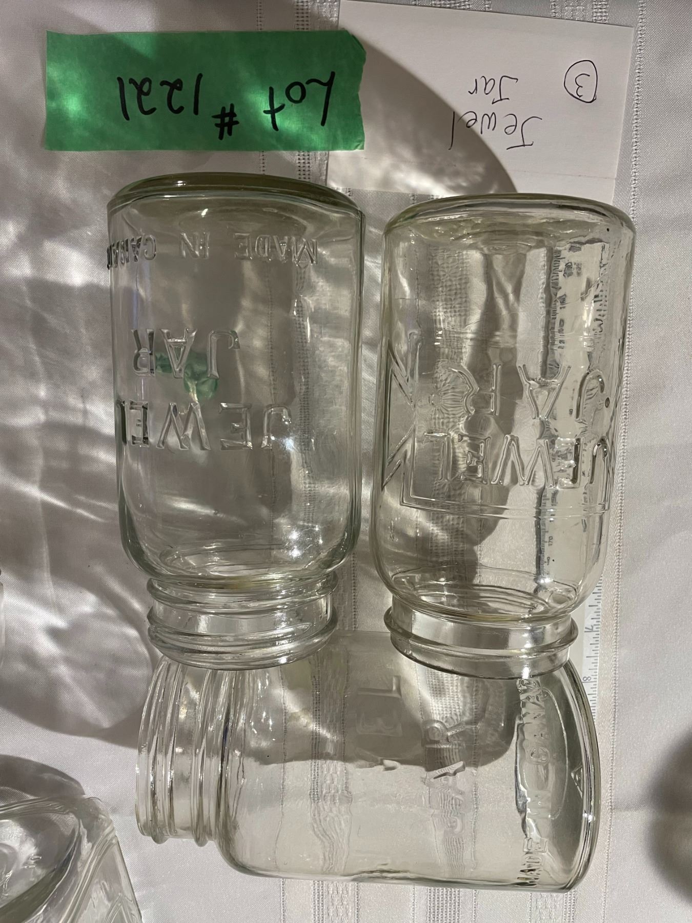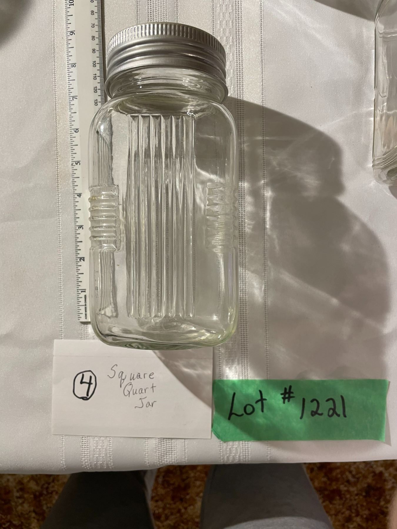 Quart Size(4)Square Jars (2) Mason Fruit Jars (3) Jewel Jars(1) Improved Gem (1) 1908 Gem (1) Ball Jar (1) Midwest