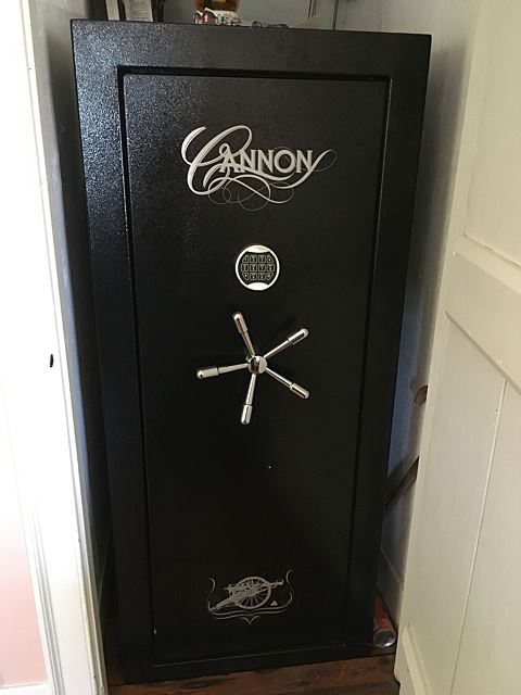 Cannon Gun Safe, very nice condition, combination available. This lot comes from a 100 year old Farm House in Sharon, CT, at the estate of Mr. John Morgan, a prominate Connecticut farmer, whose family has owned and farmed at this location for over 50 years. This lot can be picked up in Sharon CT for local buyers, or our shipper can pick up and ship to your location.