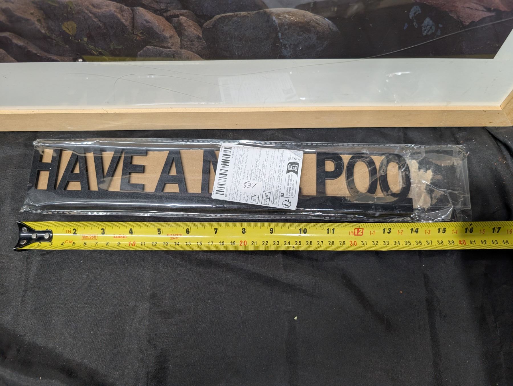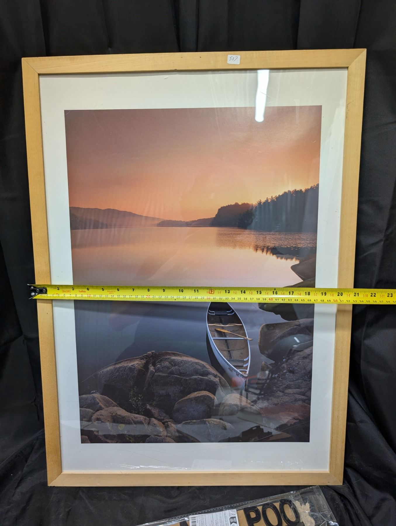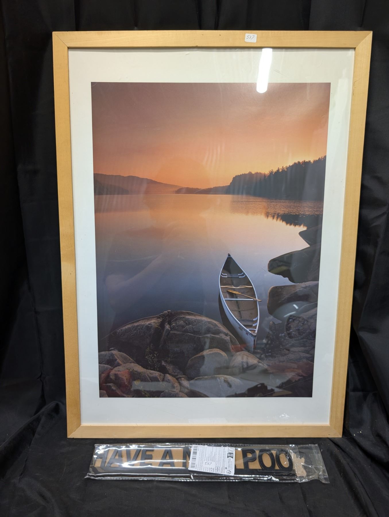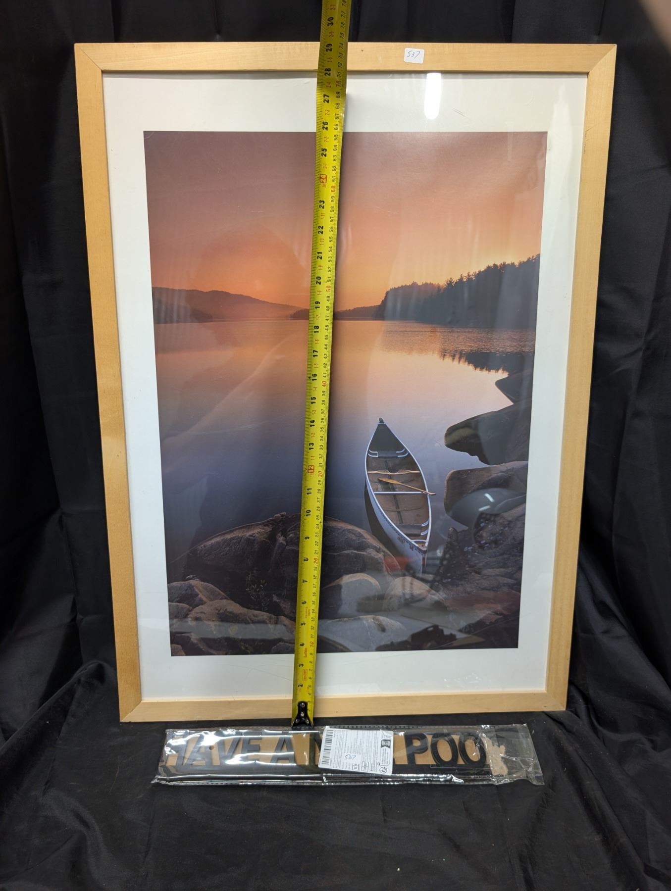 Canoe Framed Photograph 29"x21" and "Have a nice Poop" Stand
