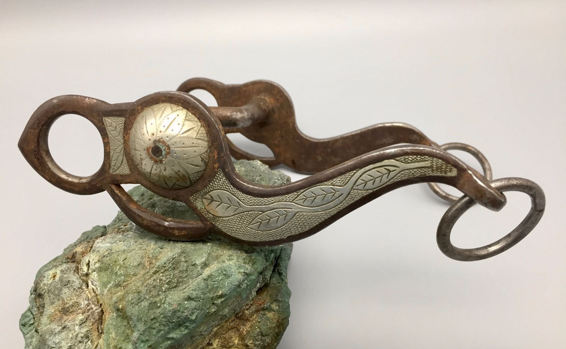 Description: Classic, Canon City prison, silver inlay bit with vine pattern. Hand-forged. Maker: Unmarked, but strongly attributed to a Canon City Prison inmate based on style. Approx. Age: Vintage, circa 1920s - 40s. Size: Mouth piece is approx. 5” l and is 8” long overall. Condition: Good for its age, normal wear expected. Please look closely at the pictures - they are an important part of our description. Shipping: There will be a $5 handling / packaging fee for shipping this lot. The actual cost of postage will be added on top of that.