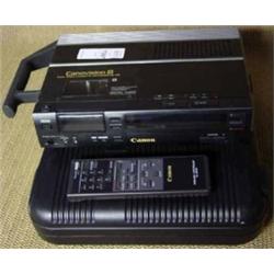 Canon Canovision 8 8mm Video Cassette Recorder Multi-Channel TV sound, Flying Erase Head, Theater Sound with remote, hard case, and owners manual Model # ES-100. Not tested - removed from working recording studio. Item does power on.