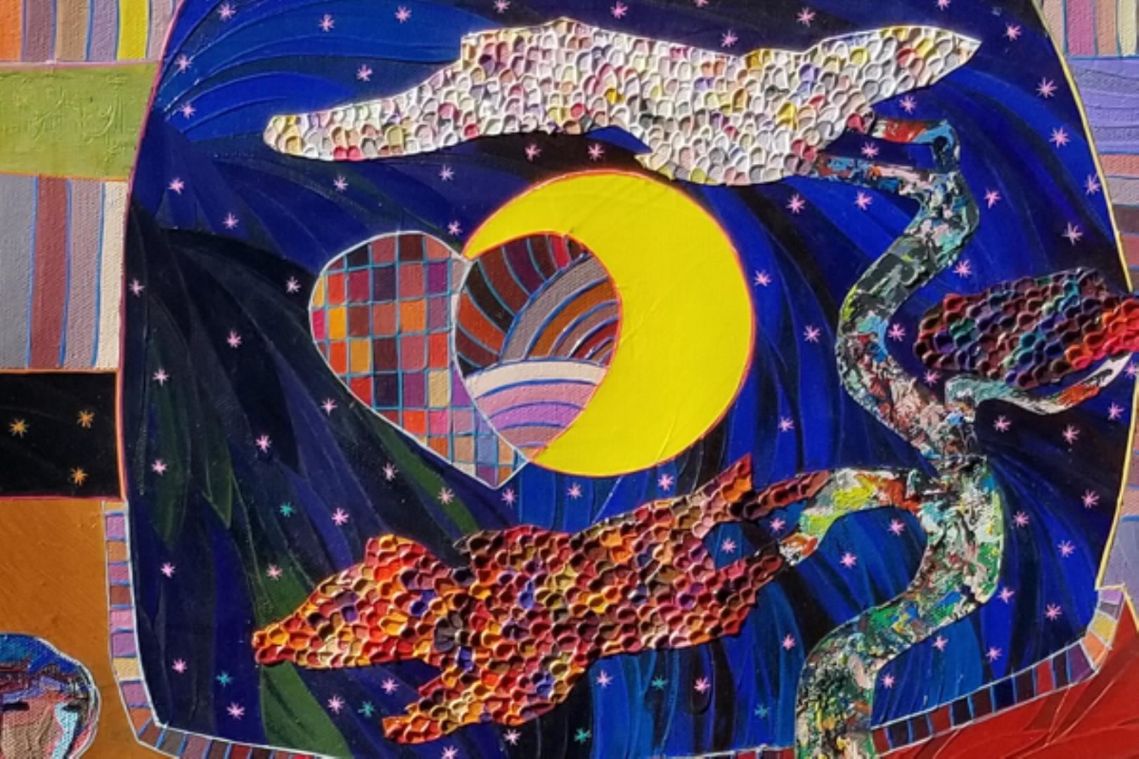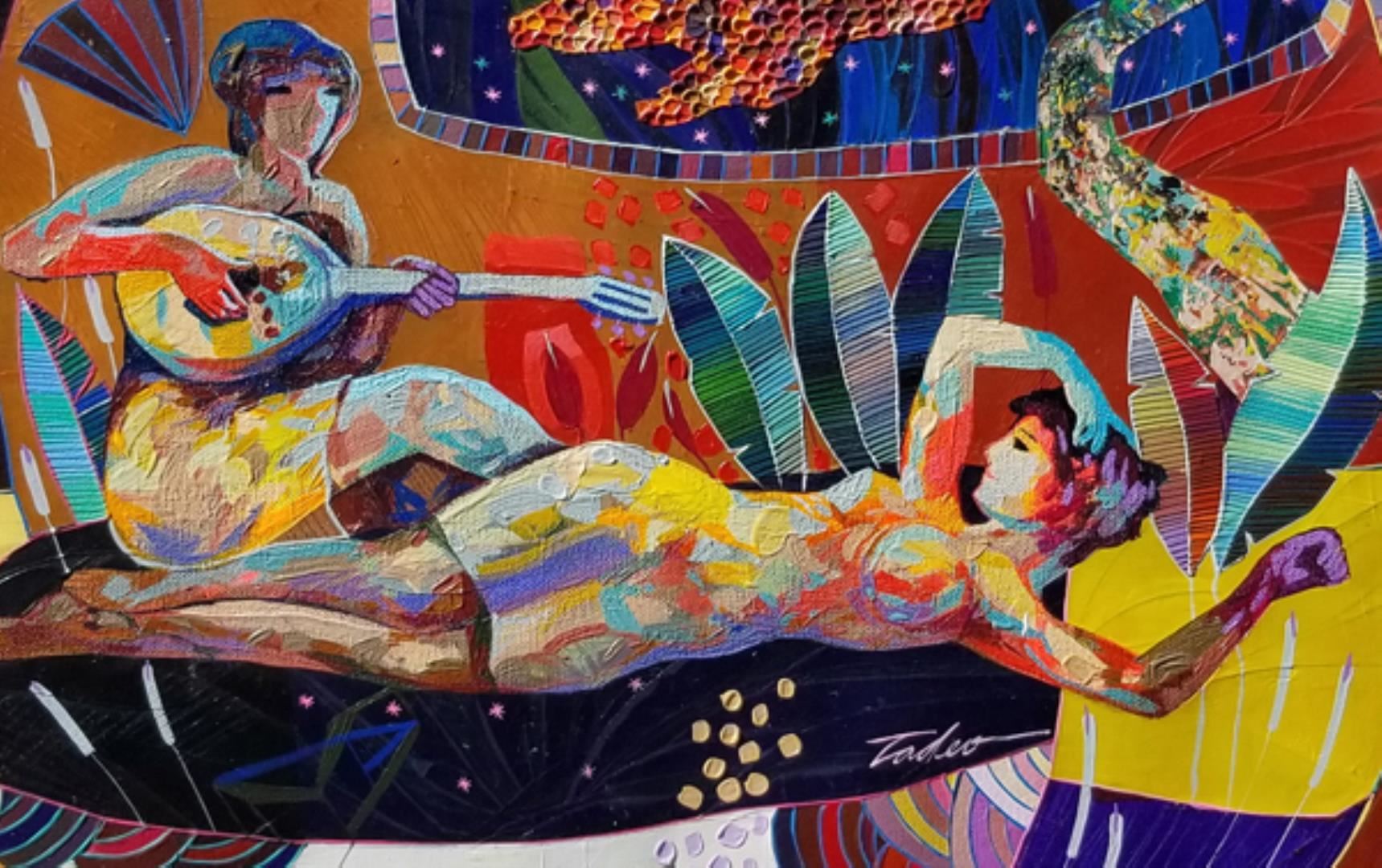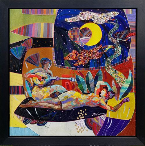 Beautiful original acrylic on canvas. Hand signed by Zavaleta. This artwork comes framed ready to hang. Frame 31x31 art 27x27 inches.