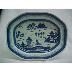 Canton eight sided platter, mid 19th C., 14" x 11 1/2" x 2" h.