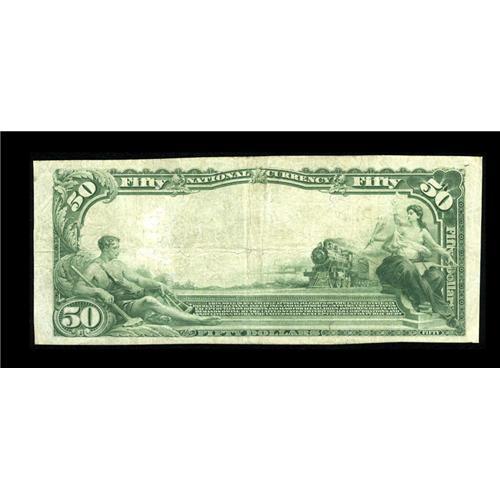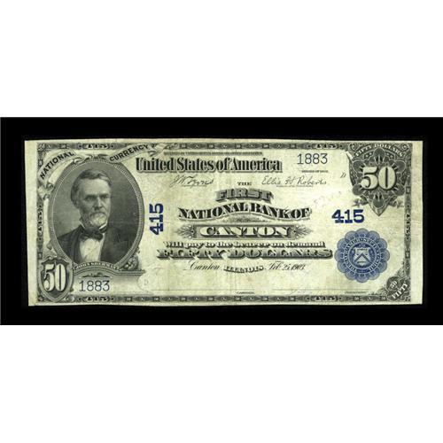<B>Canton, IL</B></I> - $50 1902 Plain Back Fr. 675 <B>The First NB</B></I> Ch. # 415<BR>Here is another high denomination example from this location. The margins are solid though the surfaces are a bit soft. <B>Fine+.</B></I><BR><I>From The Lincoln Collection</B></I><BR><BR><b>Shipping:</b> Coins & Currency (<a target="_blank" href="http://www.heritageauctions.com/common/shipping.php">view shipping information</a>)