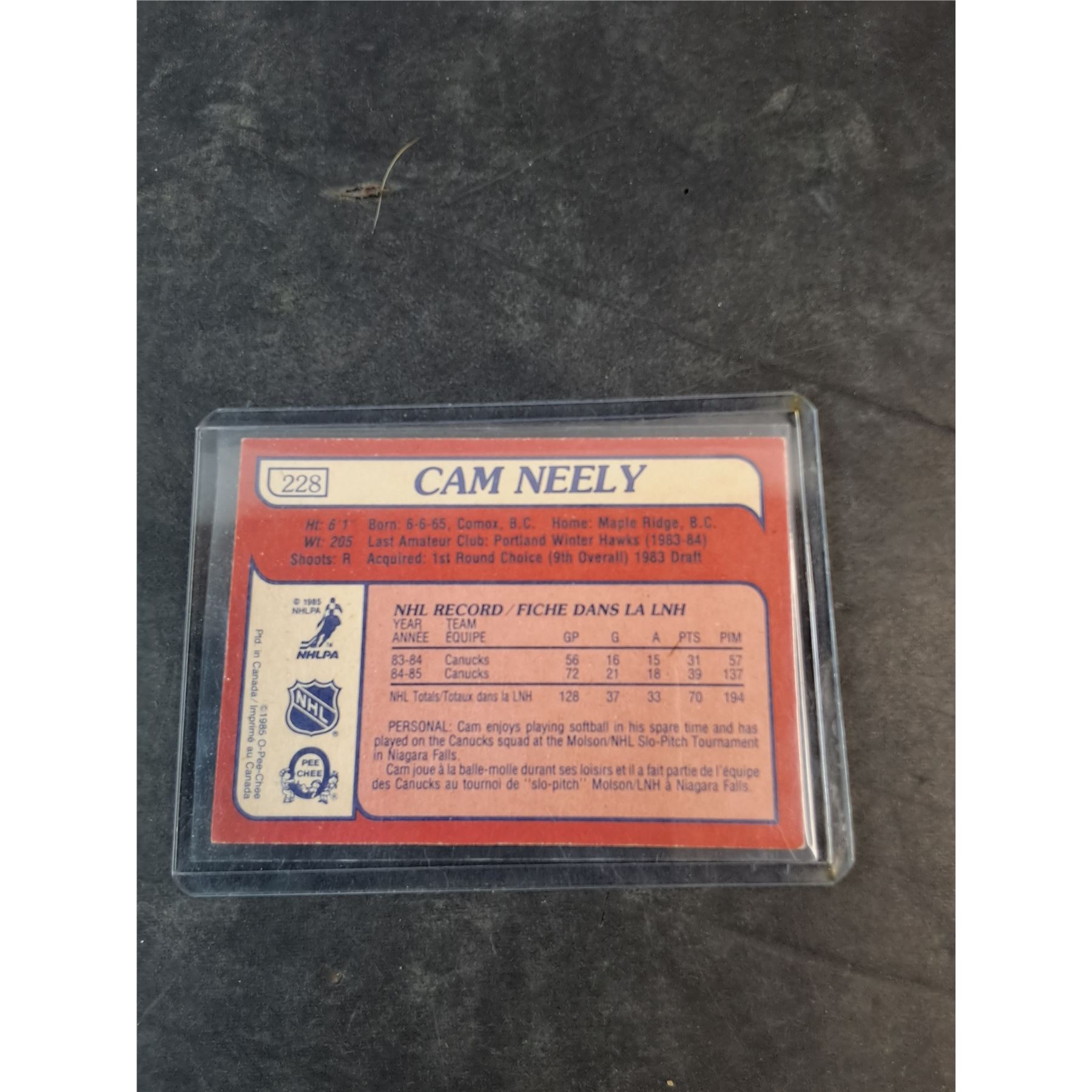 Canucks Cam Neely Trading Hockey Card - Authenticity Not Guaranteed